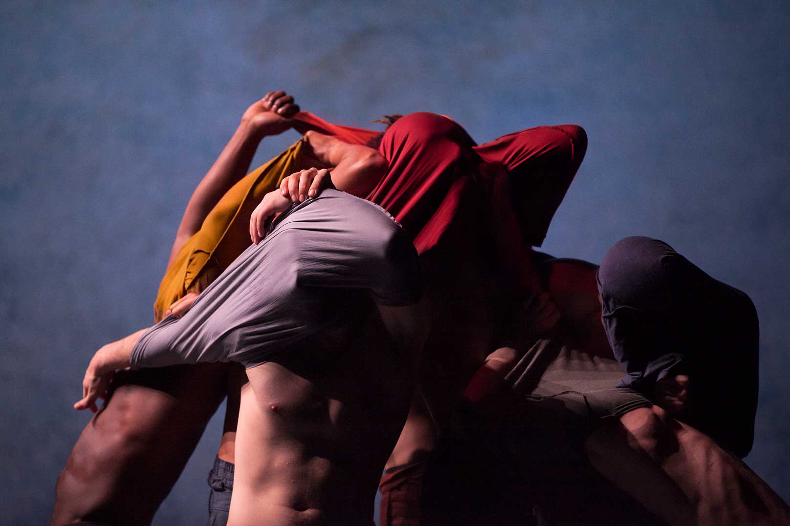 Ils sont sept sur le plateau, sept danseurs issus du Hip-Hop, de la danse traditionnelle marocaine et du cirque contemporain. Le chorégraphe Fouad Boussouf les a réunis et sur le plateau, plus qu’une confrontation, nous assistons à une formidable synthèse de ce que peut être l’homme marocain aujourd’hui. Entre tradition et modernité, sans tiraillement ici, mais au contraire dans une énergie collective ébouriffante. Sur un rythme infernal qui mène à la transe, une musique urbaine qui mêle à la poésie populaire le rock et les appels à la prière, les danseurs offrent une danse percutante, et qui n’est pas ici qu’une simple image. Si les bras se lèvent en adresse au dieu, les pieds martèlent durement le sol. C’est sans doute ce qui marque cette chorégraphie, cet étirement extrême du corps, comme écartelé entre deux pôles, le sacré et le profane. C’est une chorégraphie sous tension permanente qui ne s’accorde que peu de relâchement. Fouad Boussouf privilégie le collectif et l’énergie du groupe qu’il mène au paroxysme. Un groupe soudé par la même pulsation, le même souffle qui les emporte loin. Quelques échappées, quelques solos ou duos comme autant de battle où l’on se défie, corps à corps aussi abrupts que troublants de sensualité, où l’individu affirme puissamment sa différence, sont vite réintégrés dans le noyau indissoluble qu’il forme. C’est aussi peut être en filigrane ce que Fouad Boussouf semble affirmer, que la différence participe, et ce n’est pas un paradoxe, à l’unité du collectif, là est sans doute sa force. S’il manque une ligne narrative ferme, elle est plutôt flottante et quelque peu répétitive ici, on ne peut qu’être happé par cette volonté de rassembler ce qui semble à priori irréconciliable, la modernité irrépressible aux rites séculaires. Fouad Boussouf s’y entend pour sans heurt et sans couture apparente glisser du hip-hop acrobatique à la danse traditionnelle, aux rituels religieux. Une question de mouvements, de gestes qui se répondent le plus naturellement et finissent par se confondre, auxquels le chorégraphe donne une impulsion, un rythme soutenu, une cadence infernale, une énergie phénoménale, donnant à l’ensemble son unité. Une question de mouvement, certes, mais aussi de rituels, de son importance, celui-là même qu’il soit profane ou religieux qui rassemblent dans une même énergie une collectivité.