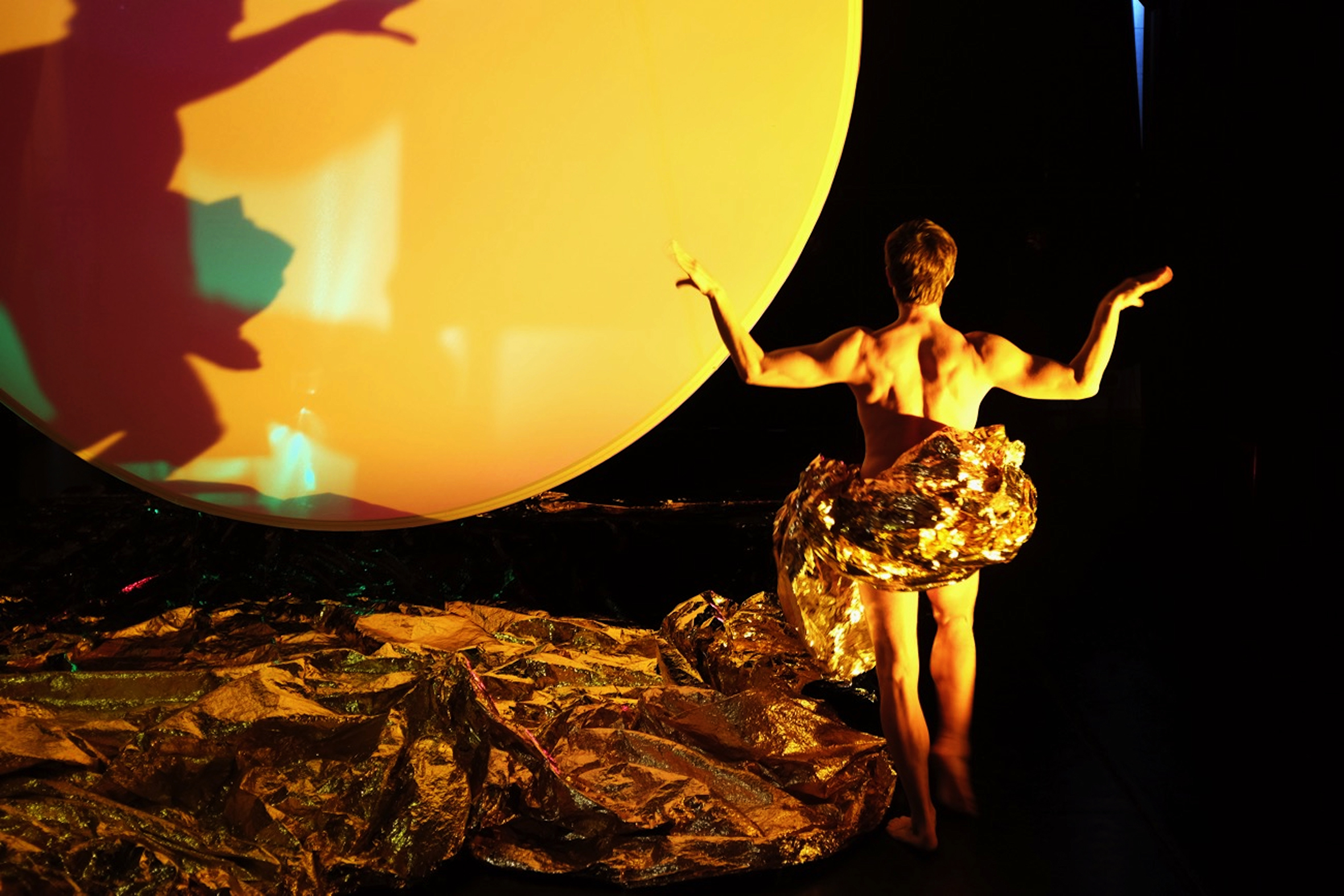 La culture de Louis XIV se donnait aussi en spectacle comme un vecteur du pouvoir. Et ce que Robyn Orlin cherche et dénonce c’est bien les résurgences actuelles. Qu’en est-il de la culture aujourd’hui, de son rôle, de son impact ? Et si le Code noir fut aboli, dans notre monde chahuté où notre culture est mise en avant, récupérée politiquement même, les discriminations demeurent, parfois au nom de cette culture brandie comme constitutive d’un roman national. Qu’exacerbe et met à nu peut être et davantage encore la crise des migrants. Toutes ces questions traversent cette performance pas si foutraque qu’elle en a l’air et bien plus acide qu’elle n’y parait. Benjamin Pech, issu de l’Opéra de Paris, donc héritier et traversé de cette culture mise en place par Louis XIV, de sa pesanteur – souvenons-nous des remous au sein de cette institution qu’Allegro en 2007 chorégraphié par Robyn Orlin avaient provoqué parmi les danseurs – s’il ne danse pas, c’était un préalable avec la chorégraphe, ou ne fait qu’esquisser que quelques pas, est un sacré performer qui mène cette réflexion fissa avec une certaine jubilation, un sacré bagout, pas mal d’autodérision. On rit certes mais le rire s’effrite très vite et le final vous glace. Ce qui pouvait paraître bon enfant et dans l’entre soi, du moins était-ce la première impression, finit par se retourner, fatale dernière vague qui emporte Louis XIV, contre nous. Robyn Orlin n’a rien perdu de son mordant. Et le miroir tendu, fut-il un portable pour un ultime selfie, met le roi – et notre héritage – à nu.