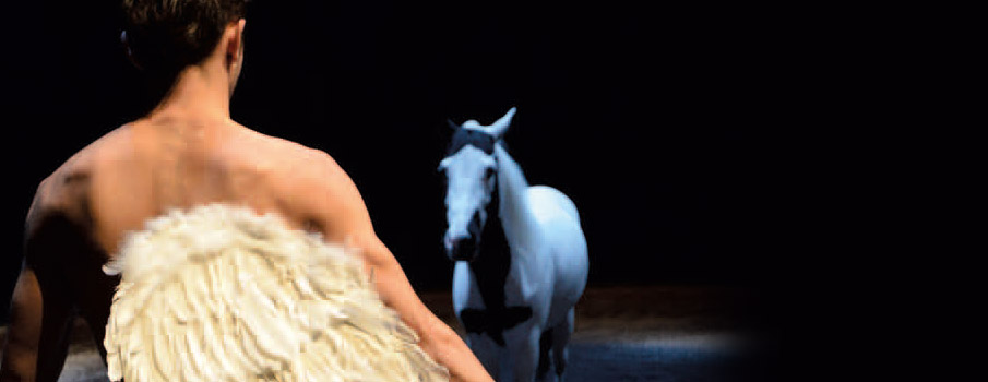 Composées en réaction aux évènements de janvier, ces élégies rythmées par l’incomparable voix de Tom Waits, offrent un superbe déploiement de tableaux à la beauté saisissante. Aux scènes chorégraphiées pour les très talentueux écuyers, succèdent des solos de Bartabas, longue silhouette noire aux flamboyants favoris rouges. Épousant symbiotiquement sa monture, il nous entraîne dans un douloureux tango initiatique dont le sens reste mouvant. Hypnotisés par les images, somnambules consentants, nous nous traçons notre propre interprétation. Le chant funèbre s’élève dans une pudeur hermétique et froide, entrecoupée d’interventions burlesques vantant les mérites de l’alléchante marchandise d’un boucher confiseur. Les trouvailles chorégraphiques sont souvent remarquables, comme ce cheval, couché sur le dos, curieux orant prenant le ciel à témoin de ces quatre fers. Ou encore ce poney blanc littéralement propulsé en l’air par le poids des anges qu’il traîne. Les prouesses techniques sont indéniables et l’on ne peut qu’applaudir la multiplicité des talents réunis. C’est un beau spectacle, sans conteste, le résultat d’un travail artistique de qualité. On aurait bien envie de s’y embarquer davantage !