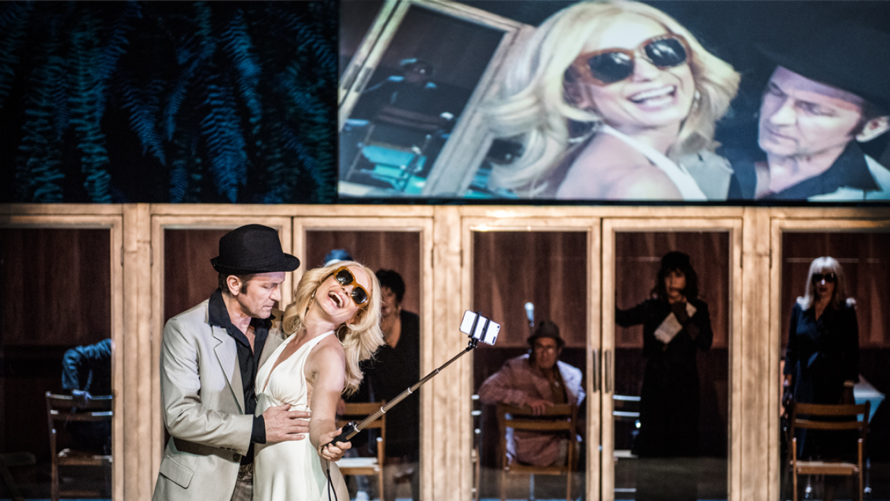 S’emparant avec quelques libertés du dispositif dramaturgique d’Anokh Levin, Krzysztof Warlikowski l’installe dans un puissant espace-temps propre à modifier les perceptions sensorielles du spectateur : d’abord les scènes, assez courtes mais très nombreuses, se superposent dans un même espace avec virtuosité procurant la sensation de fondu enchaîné propre au cinéma ; ensuite la scénographie : complètement affranchie des lieux suggérés par le texte (appartement familial, cinéma, synagogue, boîte de nuit, extérieur-ville) mais parfaitement cohérente avec le méta-texte (celui du dernier voyage) puisqu’il s’agit d’une salle d’embarquement aéroportuaire vintage, la zone d’embarquement proprement dite étant réservée aux scènes d’enterrement ; enfin, et c’est le plus remarquable, Krzysztof Warlikowski construit un espace acoustique subtilement dissocié de l’espace visuel : cela tient d’une part à la dé-spatialisation des voix sonorisées (produisant un effet d’ubiquité), et d’autre part au tissage de boucles musicales étirées sans fin provoquant des sortes de stases temporelles où l’on ne verrait plus le temps passer.