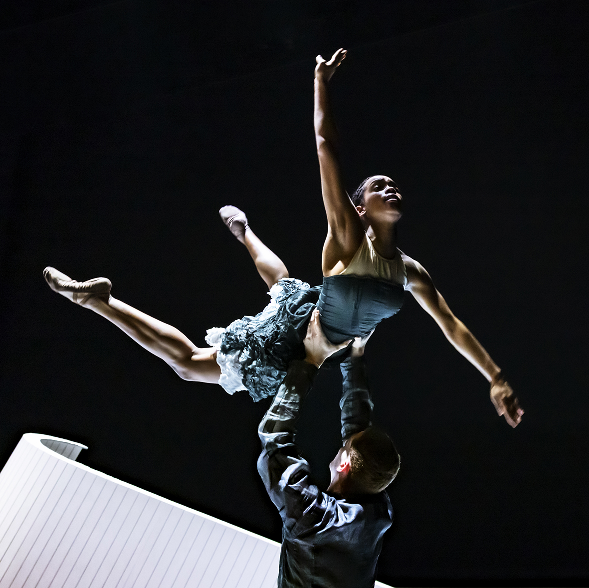Avec Out of breath d’abord, le Suédois Johan Inger nous propose un impressionnant mélange entre danse classique et contemporaine, où les pointes, les portés et les sauts alternent avec des gestes saccadés et des arrêts sur image saisissants. Les danseurs déploient leur palette autour d’une structure sinusoïdale en forme d’épave de bateau, évoquant la présence persistante de la mort, à la fois attirante et repoussante. Malgré la tendance que nous avons a oublier qu’elle fait partie de notre quotidien, elle se dresse au milieu de la scène, rempart infranchissable, forme omniprésente. Il faudra aux six danseurs, toute l’énergie de vie et la force des relations humaines pour s’en défaire, la transcender.