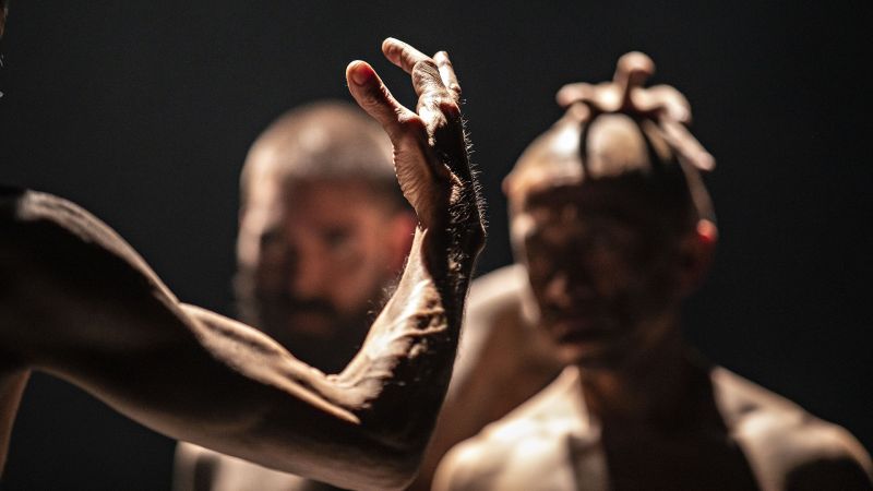 Dans le noir, une voix fatiguée : « Nuit après nuit, je fais le même rêve ». L’Homme vieux, acculé devant la mort qui vient, est hanté par les démons de son passé. « En ces temps-là », le temps ancestral se mêlant au temps d’aujourd’hui, l’humanité fait un cauchemar dont on ne se réveille pas. Elle se revoit jeune, forte et inconsciente des conséquences de sa destructrice volonté de pouvoir. Akram Khan met en miroir notre temps et la problématique de la catastrophe écologique avec un épisode de la jeunesse de Gilgamesh : le combat avec Enkidu représentant la force primitive et sa domestication, leur voyage dans la forêt de cèdres où règnent des esprits et des animaux sauvages, le combat avec le gardien des lieux et la destruction qui s’ensuit, puis la punition des dieux. Cette trame, dont le passage de la forêt de cèdres provient d’une tablette d’argile retrouvée récemment, est elliptique. Pas de référence directe, quelques mots en voix off : un texte de Jordan Tannahill portant la voix intérieure de l’homme vieux et les images fortes d’une danse ultra expressive et intrinsèquement épique.