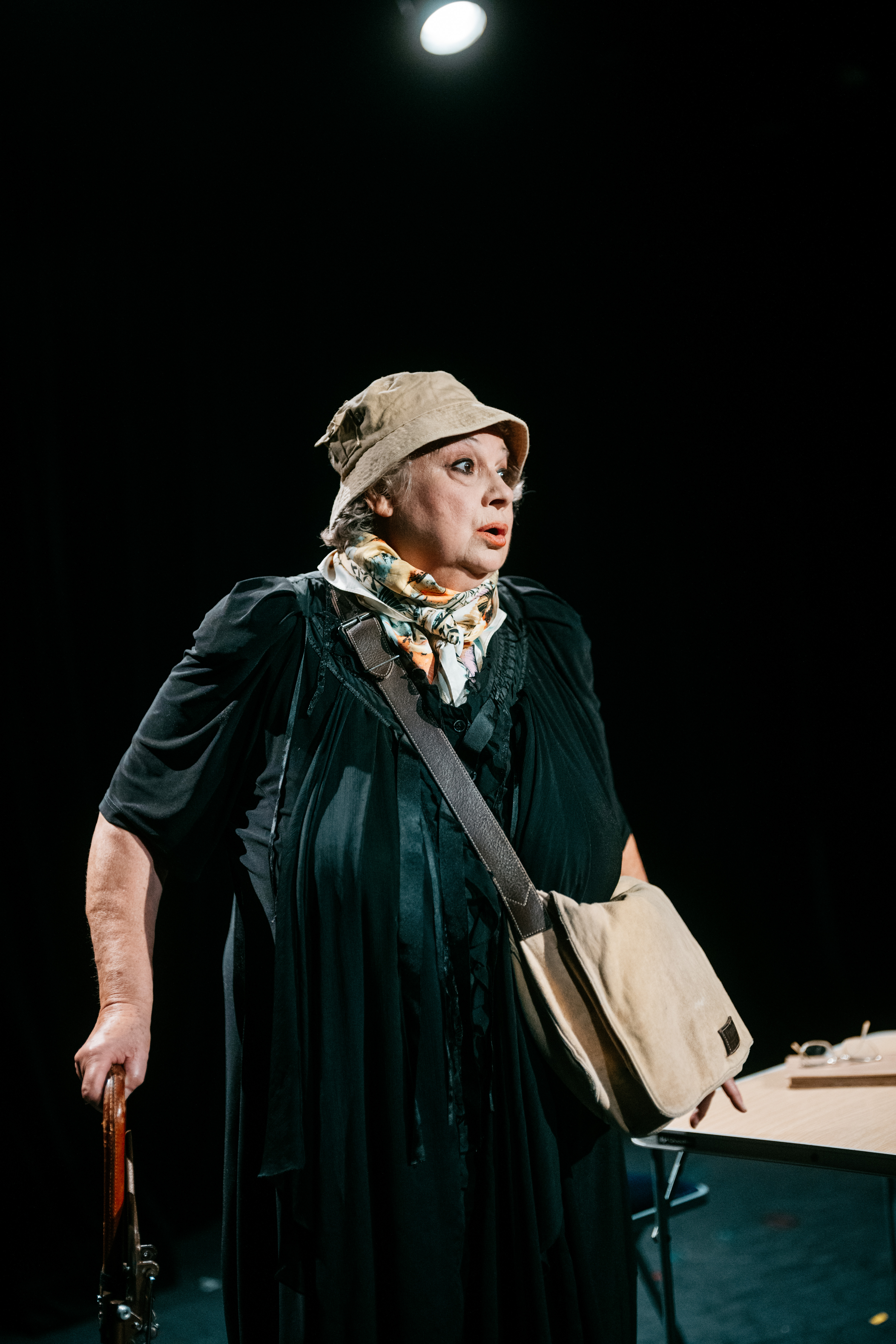 Dans le dossier de presse, la partie réservée à la présentation de Christine Murillo est résolument humoristique : la comédienne a travaillé avec des « gens émérites très très forts » et de « très grandes pointures ». Elle a joué dans des « films topissimes » et obtenu pléthore de prix, prestigieux, ou « qui n’existent plus », ou « encore mal connus ». Elle a exercé son art dans de multiples endroits, dont quelques-uns ont brûlé, ou ont été détruits. Il n’est en effet pas besoin de « présenter » Christine Murillo, et on s’amuse à cet exercice de style. Mais la notice ne fait pas uniquement sourire : elle montre aussi combien la comédienne, enfante de la balle et de Robert Manuel, connait le métier, son métier, et sait qu’il est fait de hauts et de bas, de misères et de gloires, d’éclipses et de lumières, et qu’il vaut mieux, pour y vivre ou y survivre, mettre son ego de côté, et penser d’abord à son art, avec une humilité amusée, ou un humble amusement.