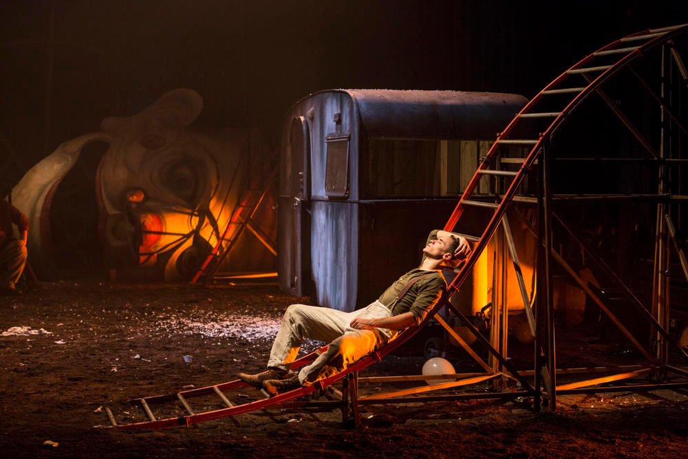 C’est du théâtre comme on en rêve, épique, populaire, engagé, traversé d’une humanité qui vous bouleverse sèchement par sa vérité, sa profondeur. Nul espoir pourtant, pas de héros flamboyant mais un pauvre type qui rêve sa vie, affirme effrontément fendre les airs, attelé à un bouc, qui ne cesse de fuir, hors du monde, hors de soi, le diable aux trousses. Une nuit roi des trolls, un jour vendeur d’esclaves, un jour prophète, un jour empereur des fous, un dernier jour vieillard exsangue, usé, désabusé par l’échec d’une vie. Voilà Peer Gynt, parti de rien pour aboutir nulle part. Qui ne cesse d’inventer pour se réinventer, menteur, hâbleur, tricheur. Formidable personnage qui regarde à peine le monde comme il va, c’est à dire mal, cherche sa place avec pour tout viatique l’invention de soi, illusoire, et l’opportunisme de moins en moins candide. Peer Gynt, héros tragique malgré lui qui ne cesse de fuir pour revenir au point de départ, dans cette caravane pourrie, sur ce terrain vague d’une fête foraine déglinguée, entre carcasse de grand huit, grande roue disloquée et tête de clown effondrée. Le monde se résume sans doute à ça, un immense terrain de jeu déserté, en friche où l’enfance fracassée de Peer Gynt a le goût ferreux, déjà, de l’échec et de l’abandon. Peer Gynt, la recherche de soi et le mensonge chevillé au corps, parcourt alors le monde à son image, un parc d’attraction, un formidable théâtre où le mensonge dit la vérité, sa vérité, jusqu’à perdre de s’y croire lui tant celui qui le profère. Peer Gynt est un personnage éminemment théâtral parce qu’il n’existe pas, parce qu’il est creux, parce qu’être soi n’est pas dans le mensonge mais dans l’altérité, le regard de l’autre. Cet autre qui se révèle aussi à son approche pour le meilleur ou pour le pire. Peer Gynt refuse ce regard, fuit la vérité. Voilà le tragique de ce personnage, être aveugle. Ce qu’il perçoit du monde n’est qu’une occasion de s’en sortir, de prospérer, et tout seul. Endosser des rôles, comme autant de pelures d’oignons, et se retrouver nu au soir de sa vie, signe l’impuissance de Peer Gynt, l’échec de sa quête, être soi, pour avoir répondu, quoiqu’il s’en défende mordicus, à l’injonction Troll, « Suffis- toi toi-même ». C’est un conte noir, une épopée fantastique, une tragédie humaniste, étrangement contemporaine, c’est du théâtre comme on en rêve, oui. Et David Bobée accomplit un miracle, sa mise en scène bouillonnante, inventive, généreuse, exacerbe cette théâtralité qu’il souligne sans jamais forcer le trait. Le monde n’est qu’une toile peinte bientôt déchirée par des fous. Avec un sens de l’image qui n’appartient qu’à lui, une poésie ébréchée, douloureuse parfois, faite de bric et de broc, voire volontairement naïve. Les rencontres les plus improbables, les scènes attendues, sont des instants suspendus, miraculeux, d’une poésie sombre, entre chien et loup, où le réalisme bouscule le fantastique. Car David Bobée, fidèle à lui-même, homme engagé, fait de Peer Gynt un enfant terrible de ce siècle en souffrance. « Fait le tour » intime le Grand Courbe. La fuite en avant de Peer Gynt, son refus récurrent de s’engager, sa dérobade au monde, sa lâcheté, son opportunisme, si elle n’en fait pas un monstre, engendre le pire, ouvre la porte aux cataclysmes. Capitalisme outrancier et religion fanatique c’est du pareil au même. Les trolls ne sont que des nationalistes fascistes. David Bobée n’extrapole pas, sa lecture de la pièce, dépouillée de tout folklore, est littérale et percutante. Peer Gynt c’est Radouan Leflahi qui porte sur ces épaules ce rôle et le poids dense d’une vie de néant avec flamboyance. C’est une boule d’énergie brute, une présence fauve et magnétique. Pas même trente ans et l’étoffe d’un grand. Près de quatre heures à parcourir le plateau, jouant de sa fatigue qui le métamorphose de sale gosse immature à ce vieillard agonisant. Et puis il y a Catherine Dewitt, formidable, mater dolorosa impuissante et dont la mort, sans pathos, vous bouleverse et vous arrache une émotion brute. Mais comme toujours chez David Bobée il y a ce sens de la troupe, métissée, et tous sont formidables, d’énergie folle, de don de soi, de partage généreux, à l’unisson dans ce cauchemar éveillé, cette tragédie d’un homme qui voulut être tout et n’était rien. La fête est finie, Peer Gynt est ce clown pathétique et poignant renversé qui ne se relèvera plus.