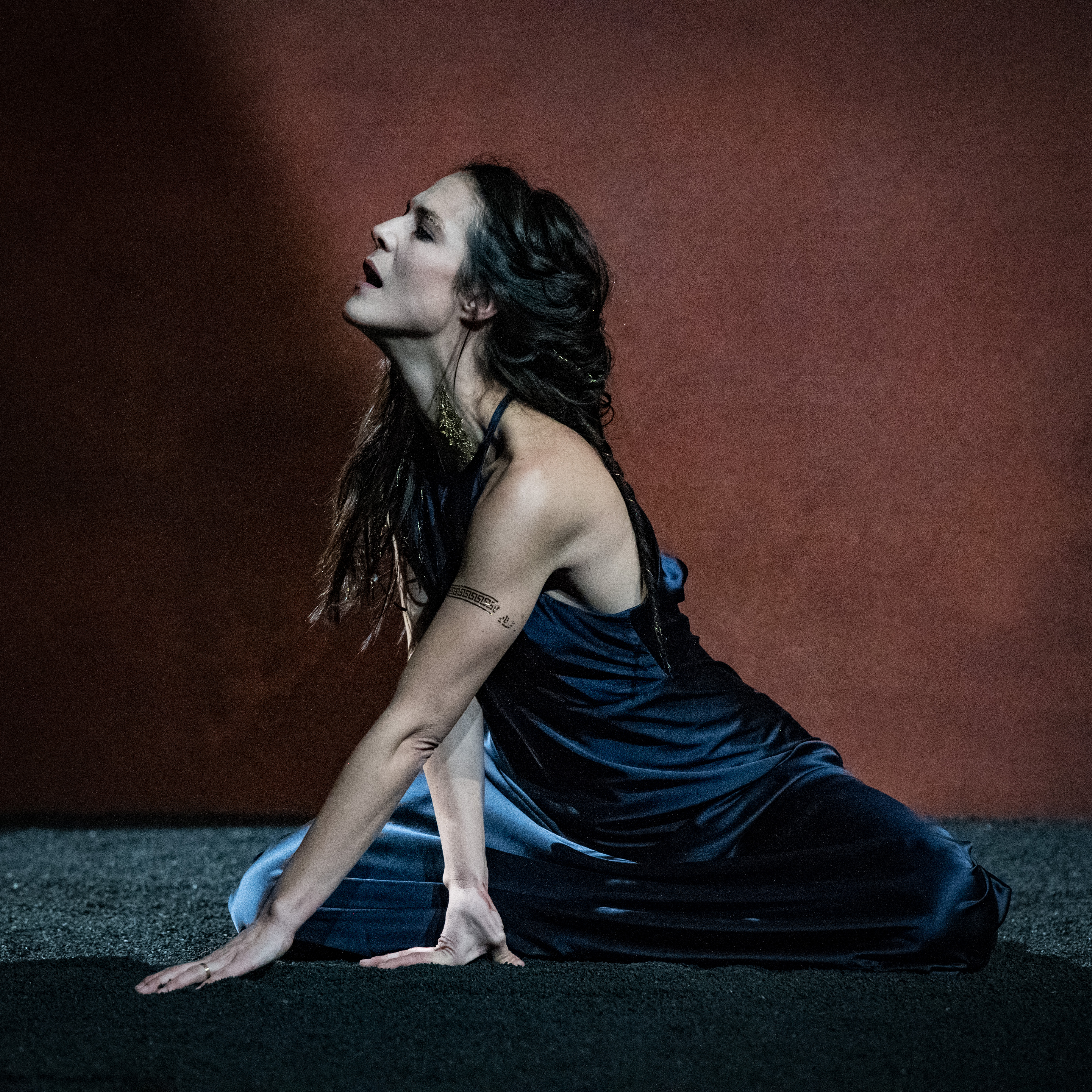 Difficile d’oublier, dans sa mise en scène de Britannicus, en 2004, cet arbre rouge à tentacules, organique, écorché, qui montait du plancher jusqu’aux cintres – sorte de bête immonde qui semblait représenter ce que le texte de la pièce dérobait. Ici, Phèdre, de dos, défait le haut de sa robe, s’offre seins nus au regard d’Hippolyte crucifié d’horreur, s’approche, frôle sa braguette : « Au défaut de ton bras prête-moi ton épée » (la tragédie n’empêche pas des pointes d’humour). Pus tard, la voici assise, toujours de dos, robe relevée à mi-cuisse, qui fourrage entre ses jambes puis exhibe les mains sanglantes du sang de son sexe. Dans cette manière de gratter sous la langue galante (« fers », « flammes », « glaces », « cruelles », « tigres »…) et de fouiller profond, on reconnaît l’empreinte de François Regnault, compagnon de route de Brigitte Jaques-Wajeman depuis quatre décennies, dramaturge, traducteur et… professeur de psychanalyse.