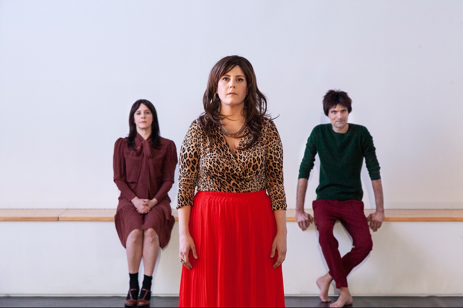 Sur le plateau ils sont trois hurluberlus, drôles de zèbres, deux comédiennes et un comédien, amateurs probablement, répétant une tragédie, Antigone, avant de s’atteler à Médée. Rôles bien plus grands qu’eux qu’ils embrassent avec une maladresse et une sincérité des plus cocasses. Avec cet effort désespéré pour répondre aux injonctions d’un metteur en scène qu’on ne verra ni entendra mais omniscient. Visiblement ce à quoi nous assistons est un filage. Ce n’est donc pas aux coulisses proprement dites mais au saut dans le vide et sans filet avant la représentation, avec cette inquiétude et la fièvre du bien faire. Et il en faut du talent pour jouer aussi mal, sans être jamais vraiment faux. Avec ça une gestuelle farfelue et mécanique empruntée, non réfléchie, appliquée consciencieusement, le pire du théâtre qu’on voudrait expérimental. Cela ressemble au final à du Grotowski pas très bien digéré. Et le hiatus entre cette gestuelle volontaire et ce qui est proféré, (sur)articulé et parfois bredouillé, est tellement énorme que le fou rire vous prend, irrésistible.