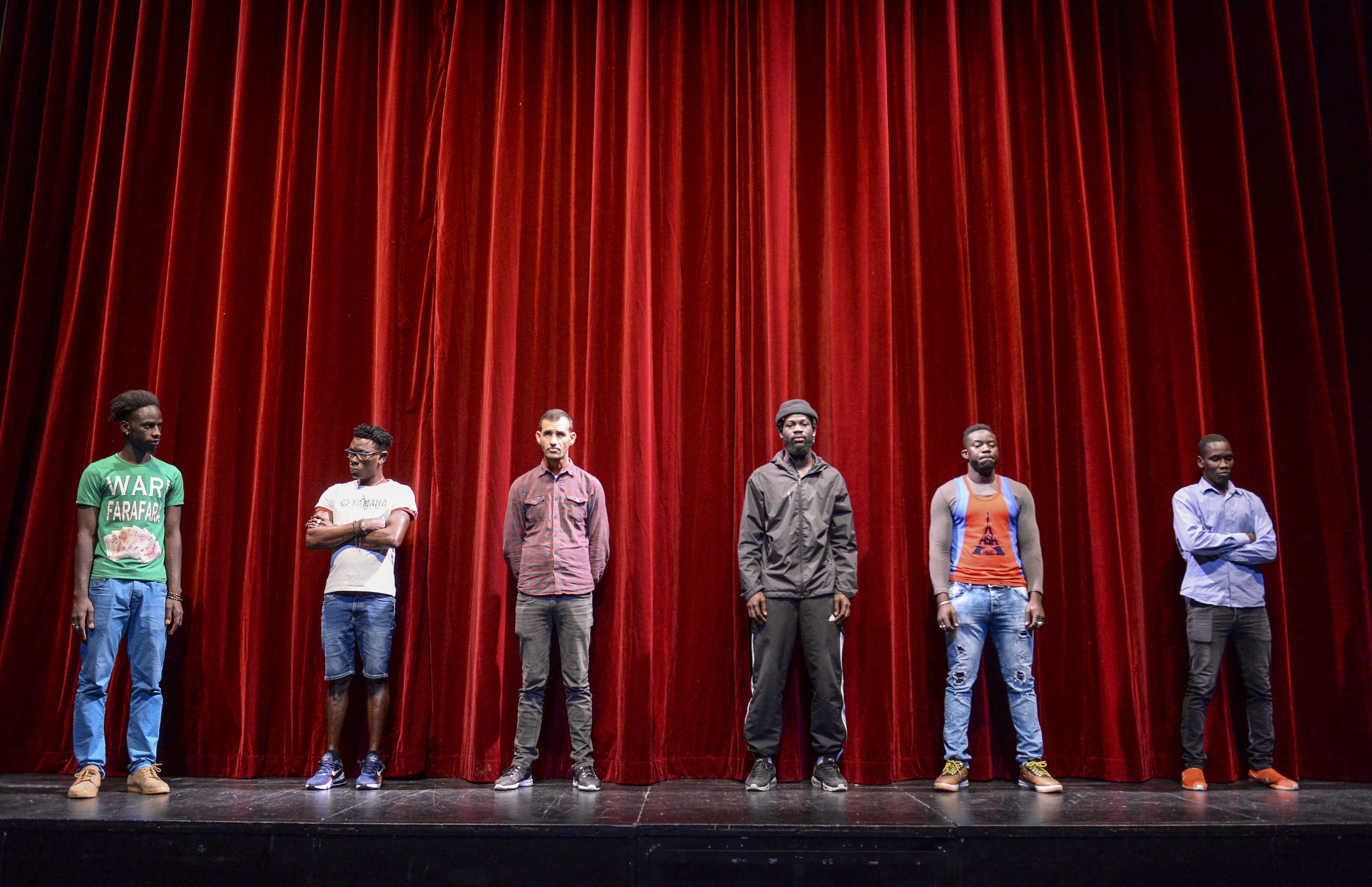 Devant le rideau de velours rouge, à l’avant-scène, ils viendront prendre place successivement et formeront une ligne, qui est aussi celle d’un récit choral : celui de Boulaye, parti de Gao pour venir ici, qui doit suivre justement cette ligne droite, sans retour ni détour possible, une trajectoire de l’Afrique à l’Europe, qui se veut rectiligne par la force d’un destin que l’on se donne, malgré les empêchements et les obstacles.