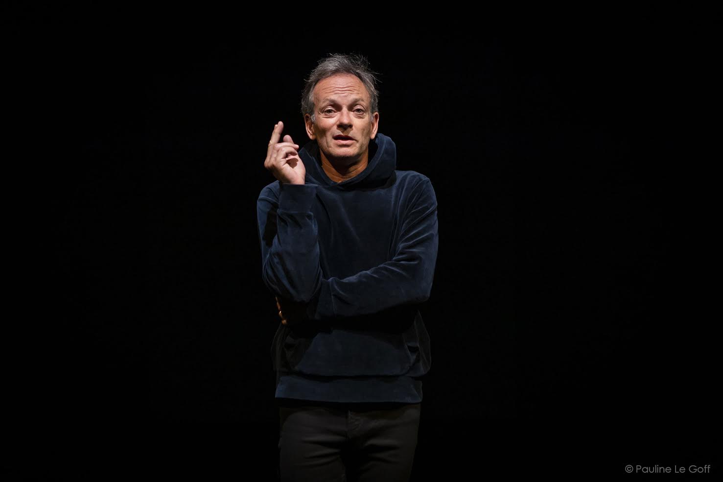Adaptation un peu sage à vrai dire, on aurait souhaité sans doute un point de vue plus polémique. Trahir ce texte un peu trop lisse au regard d’une réalité plus âpre même s’il n’épargne rien de la violence du parcours de Laurent pour atteindre Lauren. Famille pulvérisée, transphobie de l’entreprise, emprise d’une certaine psychiatrie qui ne voit là qu’une névrose obsessionnelle. Julien Desjours reste dans les bornes du texte et ne s’en éloigne pas, pas plus qu’il ne s’éloigne de son personnage. Il n’y a à vrai dire rien à reprocher vraiment. C’est une mise en scène d’une rare et juste sobriété, tenue et subtile, élégante même, rien de moins, rien de trop. Un délicat équilibre qui évite toute affectation, ce que l’on aurait pu craindre avec ce sujet propre à tout débordement, voire d’excès. Sébastien Desjours demeurant tel qu’en lui-même, entre masculin et féminin, se refuse au travestissement. Reste ainsi avec justesse et paradoxalement fidèle au personnage qu’il ne trahit ainsi aucunement en se refusant de jouer à « être », à vouloir incarner absolument. Heureuse et fragile distance qui évite tout voyeurisme malgré l’émotion qui affleure. Juste une vérité nue, des faits énoncés. C’est donc au spectateur de faire la démarche, de voir la métamorphose de Lauren ici détourée. Et ce n’est pas plus mal. Une veste de tailleur, une paire de chaussure à talon haut, ces quelques signes affirmeront seuls la transition de Laurent en Lauren. Et c’est dans la lumière, après le clair-obscur du plateau, et dans la salle même prenant donc chacun à témoin et sans plus de distance soudain que Lauren se révèle enfin. Ainsi Sébastien Desjours projette brutalement le texte, la fiction dans une réalité tangible et troublante.