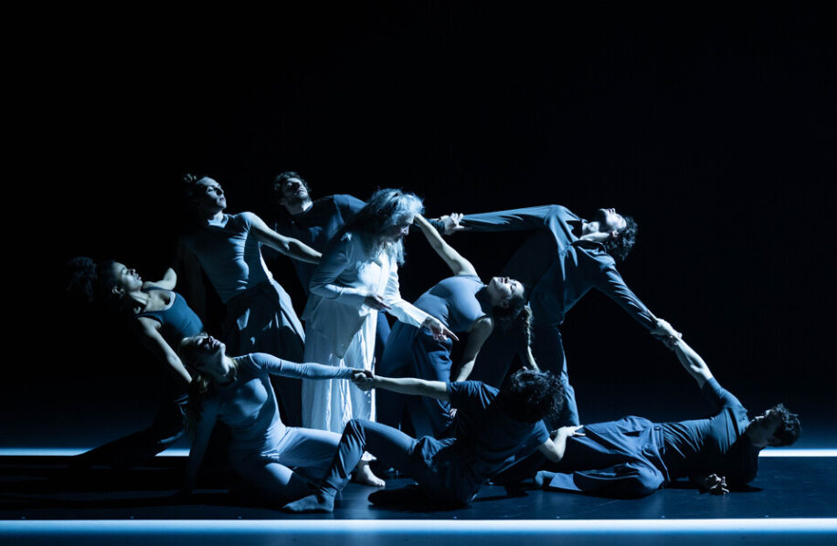 Famille heureuse, embarrassante, toxique, absente… Comment s’en extraire ou au contraire s’y réfugier ? C’est ce que les tableaux successifs développeront, proposant des partitions d’ensemble aussi graphiques que tourbillonnantes, en alternance avec des moments plus intimes de solo ou de duo. A plusieurs reprises, notamment, l’émotion sera de mise dans des instants très tendres entre un des danseurs et cette femme en robe de chambre blanche et longue chevelure grise détachée.