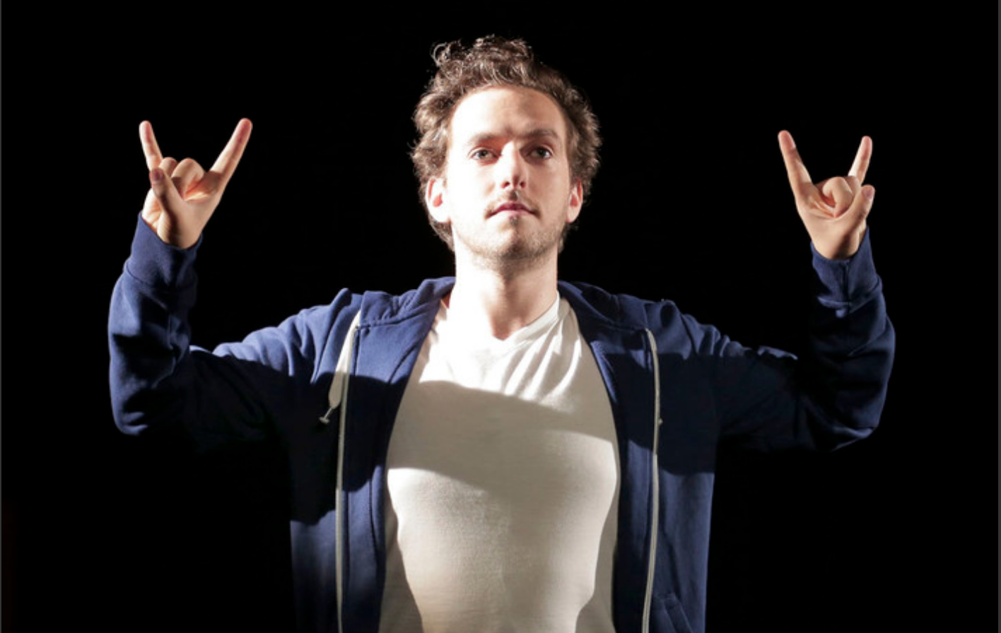 Au début, la succession de calembours « pourris » (c’est l’humoriste qui le dit) peine à faire sourire. Sommé de « poéter plus haut que son cul », Hirsch enfile les jeux de mots les plus affligeants. Il ne semble pas y avoir le temps, comme chez Raymond Devos, de labourer le langage jusque dans ses plus absurdes sillons. Coule un robinet d’eau tiède de phrases « ludiques » et estampillées drôles, jusqu’à la fatigue, qui charrient sans charrier une philosophie bienveillante et bien-pensante – addiction délétère aux portables, joie du théâtre qui rassemble, impostures de l’art contemporain… S’enchainent des numéros sans autres liens que le personnage qui grandit, une scénographie dépouillée et très maligne, et de magnifiques éclairages. Hirsch semble avoir greffé un canevas lâche autour d’idées de jeu, ou de jeux de mots à idées.