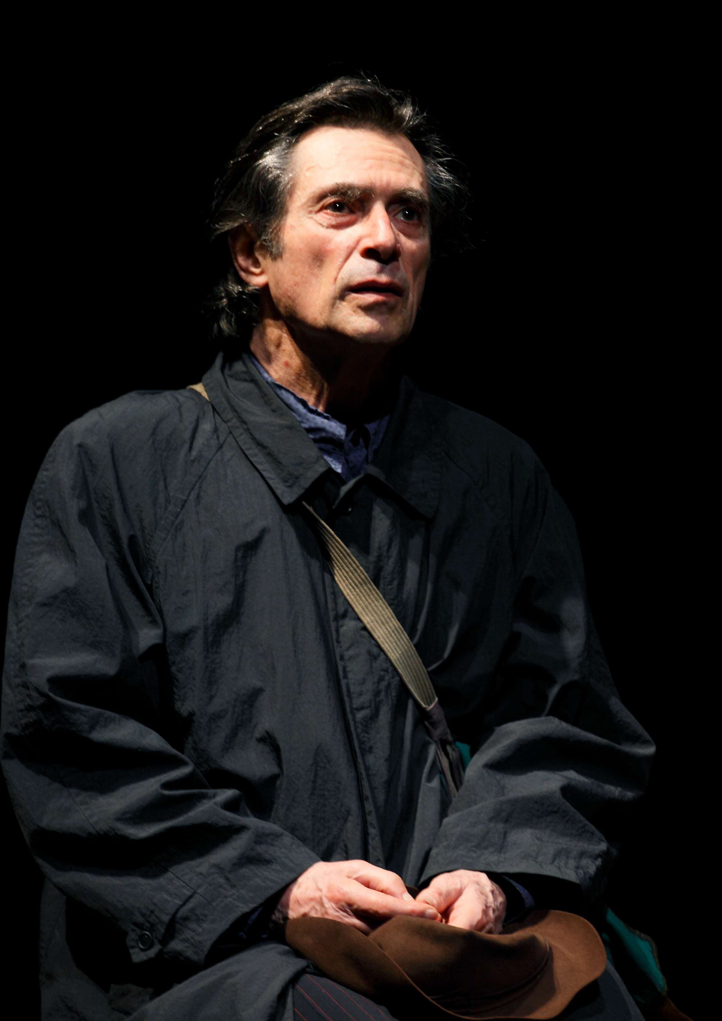 Premier amour est une fine esquisse d’un avenir, celui des personnages, de l’univers de Beckett. Déjà dans ce récit perce délicatement cette métaphysique de l’absurde et l’humanité rongée et piteuse de ces clochards célestes que seront Vladimir, Estragon, Krapp et consorts. S’il n’est pas empêché, contraint comme seront ses autres personnages, on songe à Winnie enclose en son mamelon, le banc et la chambre évoqués dans Premier amour et qu’il ne quitte pas ou peu, avant de s’enfuir comme Buster Keaton dans Film, enferment notre récitant dans une réclusion volontaire. Récit d’un amour, souvenir de mort. Dans Samuel Beckett les deux sont corollaires. « Elles accouchent à cheval sur une tombe, le jour brille un instant, puis c’est la nuit à nouveau. » est-il clamé dans En attendant Godot. Ici l’évocation d’un amour ne va pas étroitement sans l’évocation de la mort du père qui signa son déclassement. Ainsi commence ce monologue. Récit d’une liaison entre une prostituée, Ana/Lulu, et cet homme aux souvenirs fragiles et incertains. Cet homme c’est Sami Frey qui endosse de nouveau ce personnage. Il n’y a rien de trop dans cette création. Tout est dégraissé. Deux bancs adossés au rideau de fer de la scène, une porte close, une lanterne rouge qui clignote, une sonnerie qui interrompt et appelle, provoque de rares déplacements d’un banc à l’autre. Beckettien en diable. Et cet homme qui semble attendre fébrilement. Quoi ? On ne saura jamais. Le voilà qui en confidence déroule sa vie. Sami Frey ose le rien, le vide, se garde de tout effet. Toujours juste et précis dans ce récit déroulé, cette écriture lumineuse, concise, qu’il semble modestement effleurer. Mais chaque mot est pesé, chaque phrase éclate de vérité, chaque rupture et silence ouvrent vers l’inconnu. C’est un nuancier d’émotion d’une délicatesse infinie. D’une voix égale qui parfois se meurt dans le souvenir et la rumination. Le récit semble s’inventer sous nos yeux, les souvenirs émerger au fil de ce conte. Soliloque que menace volontairement l’ennui mais le charisme, la présence et le mystère de Sami Frey acculé à l’avant-scène aimante littéralement la salle attentive. Faire corps avec l’écriture, sans la dénaturer, s’effacer pour la sublimer, voilà ce que réussit magistralement Sami Frey. D’une vie minuscule révéler le tragique de l’existence, son absurdité dans un dépouillement, qui n’est pas austérité, vous bouleverse sans que vous y preniez garde. Soudain l’émotion est là qui s’impose à vous.