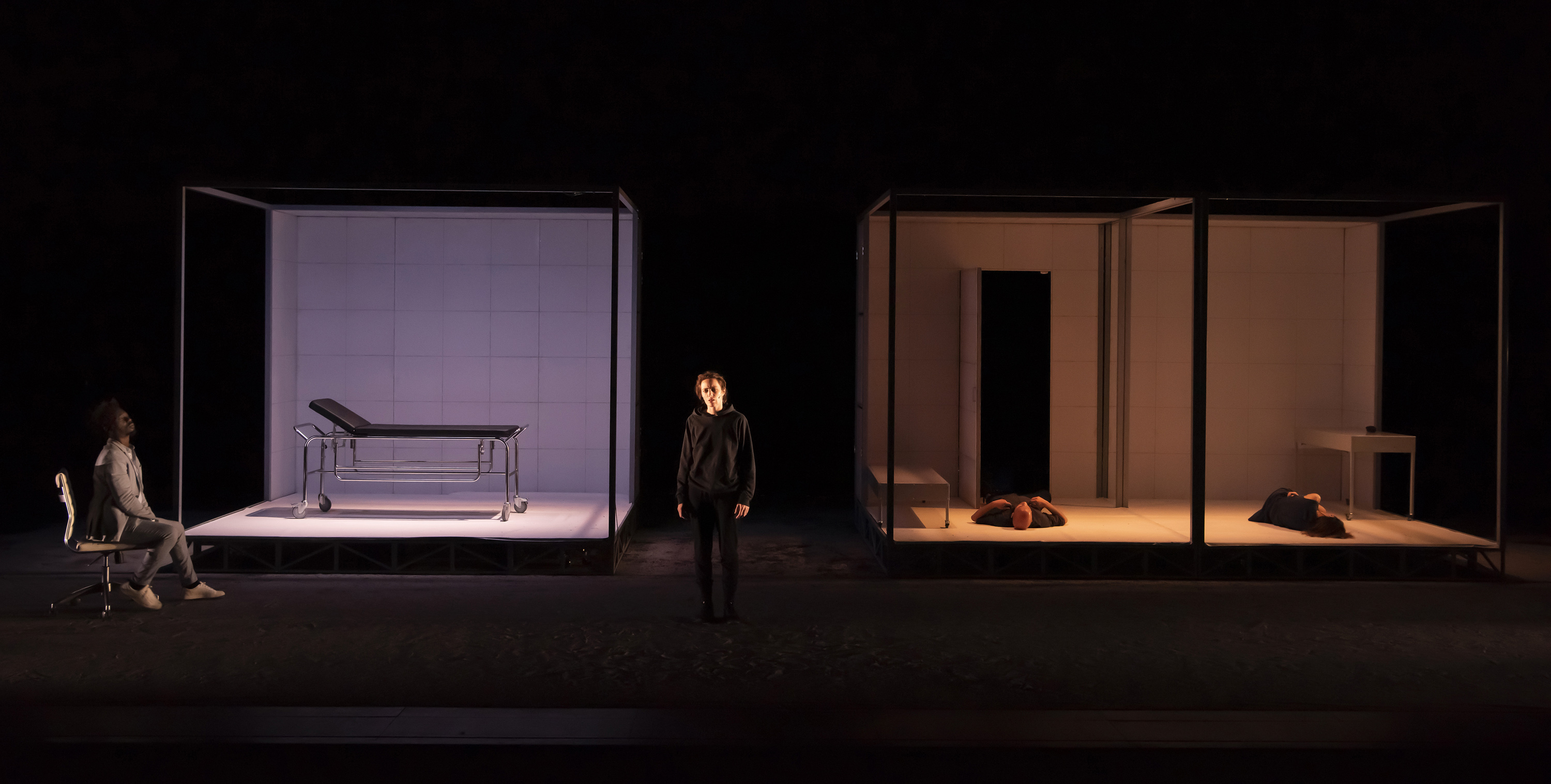 On ne sait pas encore ce qui relie les deux espaces, les deux histoires. Nora parfois s’aventure dans l’espace d’Irène et Younès, sans être vue. Serait-on dans ce « jardin des fantômes » qu’est le théâtre selon Wajdi Mouawad ? Mais qui sont Irène et Younès pour Nora ?
