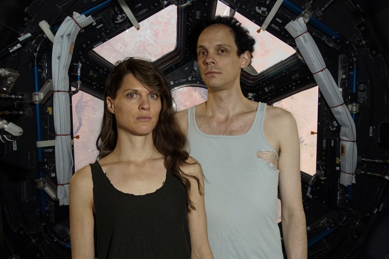 Très vite, Joëlle et Joël ne sont plus de savants manipulateurs de colloque mais des êtres humains, parmi ceux pas trop bêtes, pas trop méchants et certes un peu perdus parfois, qui, sans le savoir, sauveront l’humanité. Et là, tout nous est expliqué, démontré, raconté, prouvé même et l’on plonge très vite dans cette folie pure. Des rires fusent ici ou là, oui, Quitter la Terre est assez drôle, mais surtout ces deux personnages font naître peu à peu un sentiment étrange de tendresse, nous n’y sommes plus habitués sur Terre, c’est vrai… Au tout début, on peut rester dubitatif face à des répétitions dont on a peur de se lasser, des petites lenteurs ici ou là. Et puis on part, on décolle, nous aussi on flotte dans la station, rejoignant les « cru-végétaliens » qui y refont le monde. La question est forte, le sujet pourrait donner naissance à un jeu lourd et mal puissant. Non, on se laisse perdre en suivant ce thème si bien soutenu par Joëlle et Joël. On comprend tout et rien et on en est de plus en plus heureux. Le temps n’existe plus, la mort est toujours là, elle, mécanique et très peu douloureuse, juste normale. Oui la normalité sauve le monde, c’est un peu ce que l’on apprend ici.  Cela pourrait faire mal de le dire, être dangereux pourquoi pas, mais elle apparaît dans toute sa simplicité, si proche de la nature qui a toujours envie de faire l’amour, même de façon un peu surprenante, et tant mieux même !