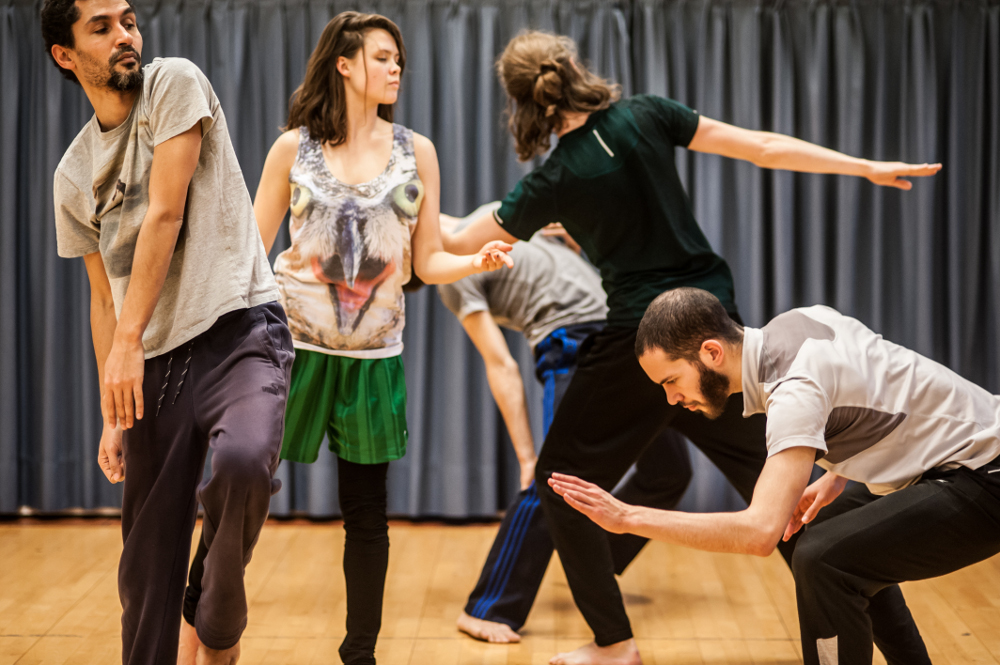 Une danse captivante de bout en bout, voir hypnotique, qui vous embarque fissa et ne vous lâche plus. Cinq danseurs sur un tapis orange en dialogue continue avec une musique techno qui impulse mouvements et vitesse. Ça commence comme un échauffement, en apparence, mais déjà la danse s’installe insidieusement. Les danseurs vont et viennent, parfois restent en retrait, attentif, dans l’ombre. Et dans cette ombre relative dansent encore. Ce qui au premier regard semble être une danse impulsive, intuitive, celle des danse-floor, s’avère bien plus sophistiquée et habilement menée et construite. Une architecture mouvante, fluide, entre impulsion et sophistication, entre danse populaire quoique socialement définie − la danse reste toujours un marqueur social − et danse performative contemporaine. Deux vocabulaires qui ne s’affrontent pas, ne s’opposent pas mais qui ici inventent une langue nouvelle, se nourrissant et de l’un et de l’autre. C’est une danse fragmentée où le geste, partagé ou non, ne cesse de se réinventer, improvisé, repris, développé jusqu’à son épuisement, abandonné et ça dans un même élan, une franche énergie, une impulsion qui ne faiblit pas, soutenu par la musique en flux continu qui participe à l’intensité de cette partition prégnante et dense. Danse décomposée, recomposée, d’accélération en décélération soudaine ou progressive. Danse tout en opposition, en contraste. Le corps fait acte de mémoire − le corps à une mémoire − et chaque geste est comme la trace ancienne, le souvenir fugace de danses enfouies qui soudain remonteraient à la surface. Ce sont ces traces-là, furtives, esquissées, happées, ces strates qui surgissent et composent, nourrissent cette danse qui très vite se structure, évolue en directe, devient un objet performatif détaché de tout formalisme, opérant un syncrétisme original, semblant s’inventer selon sa propre loi, parfaitement autonome, libre enfin. Et c’est fascinant de voir évoluer ces cinq-là, concentrés, dans cette intensité progressive basculant dans une quasi transe que rien ne semble pouvoir arrêter pas même la musique qui ne les lâche plus, les contient, et impulse un tempo, un rythme très vite infernal. Le chorégraphe espagnol Salva Sanchis et Discodesafinando (Senjan Jansen et Joris Vermeiren) parviennent à un dialogue réel et réussi où la musique n’est plus un accompagnement mais bien un partenaire qui participe pleinement à la chorégraphie, avec lequel on compose et pour lequel on compose.