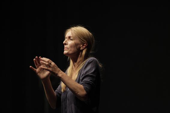 De ses données brutes Antonio Tagliardi et Daria Deflorian s’emparent et sur un plateau nu, tentent de reconstituer ce qu’aurait pu être la vie de Janina Turek. Partir de ces détails quotidiens numérotés au jour le jour pour inventer une biographie imaginaire et fragile. Un jeu de reconstruction pour faire apparaître en creux le portrait d’une femme, d’une vie anonyme et banale. Ce sont quelques bribes supposées à partir de cette matière incroyable que sont les inventaires notés dans les carnets de Janina Turek. Mais au-delà, ce à quoi nous assistons, c’est à une fabrique théâtrale. De quoi le théâtre est fait, comment il se nourrit, comment un personnage peut naître. Les deux comédiens-metteurs en scène posent des hypothèses, ne cessent de dialoguer entre eux, vont du récit au jeu. Passent ainsi du comédien au personnage et vice versa, parfois et le plus souvent restent sur la crête, entre les deux. Une confusion habilement troussée et disons-le, pirandellienne. C’est drôle, astucieux et rondement mené. Bien sûr, le portrait dessiné de cette vieille dame polonaise morte sur un trottoir de Cracovie (mais est-ce encore là une hypothèse ?) prend une épaisseur poétique dans sa banalité, son quotidien reconstitué. Mais au final, La vraie Janina Turek garde son mystère parce que son personnage théâtral est à l’image de ce qui la représente sur le plateau, une couverture. Le personnage théâtral Janina Turek n’existe pas, ne peut exister. Comme les personnages de théâtre n’existent pas. Elle échappe en fait à ces deux qui sur le plateau brodent une fiction, improvisent une vie, jouent un personnage qui toujours échappera à son créateur. C’est aussi cette impuissance qui est ici mise en scène. Pas un hasard si la première scène, hilarante, est celle de la mort du personnage que les deux comédiens ne réussissent pas à mener. Mais de cet échec relatif à la représentation, Janina Turek prend une formidable dimension, une profondeur par son mystère insondable. Et sur le plateau nu, avec la pauvreté volontaire des moyens, (volontaire vraiment ? Devant le « génocide culturel » italien actuel on se dit que ce plateau nu est aussi sans doute un non-choix), Janina Turek prend soudain paradoxalement toute sa place. C’est une création subtile, intelligente et réussie.