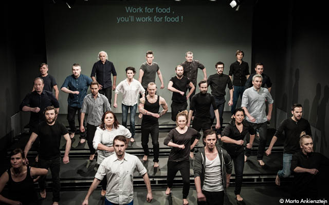 Les Amandiers nous proposent cette semaine un étrange objet scénique orchestré par une jeune metteure en scène polonaise. Marta Górnicka travaille depuis quelques années sur la réhabilitation du chœur tragique comme expression révolutionnaire. Elle a choisi des vers du poète polonais Władysław Broniewski pour nous dire la souffrance liée au travail. Chômage, surmenage ou douloureuse marchandisation, les thèmes des années 20-30 semblent parfaitement et tragiquement coller à notre siècle naissant.