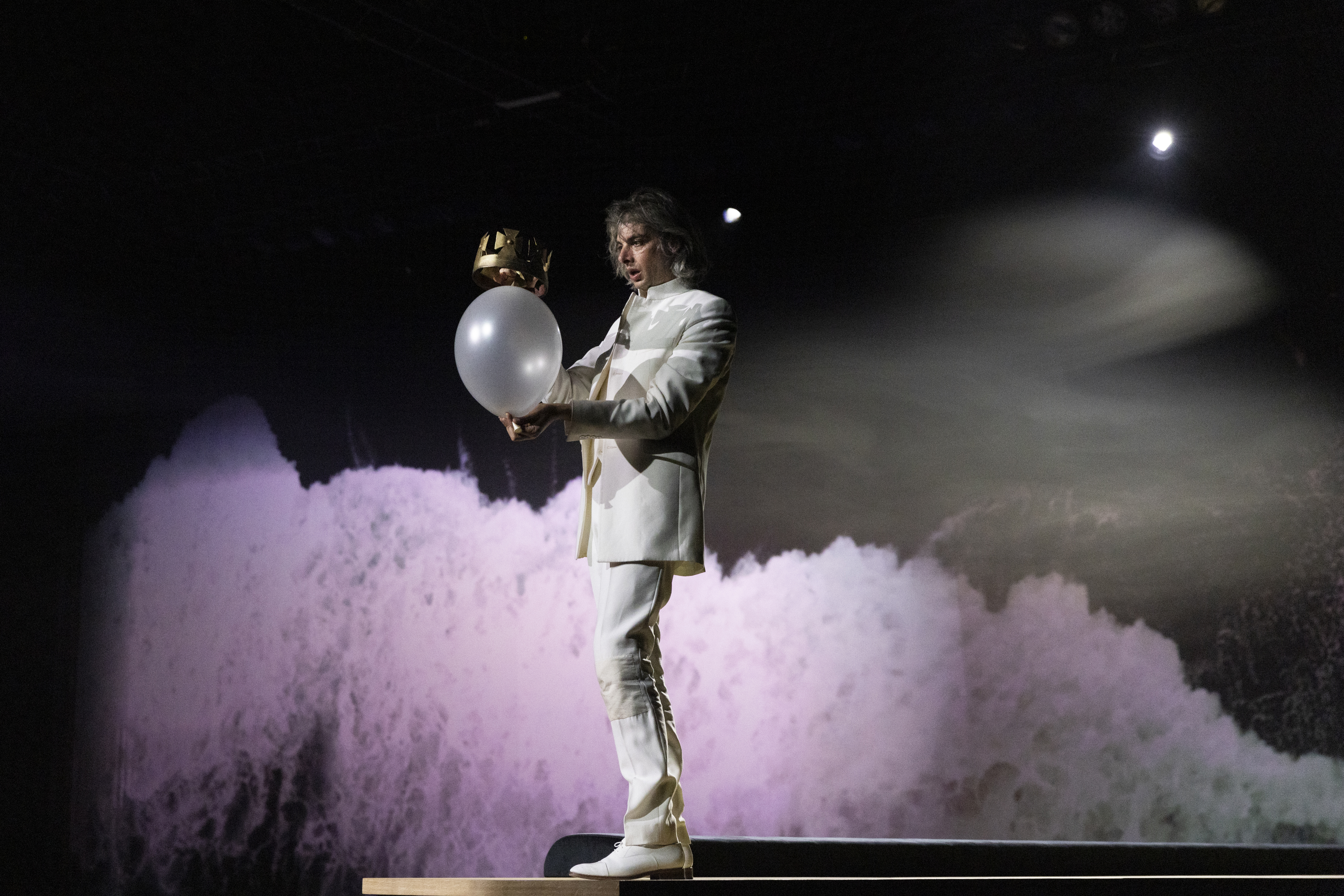 Il est ce roseau pensant dont parle Pascal, que sa charge écrase et que sa destitution libère. Plus légitime enfin par son rachat et par sa fin. Parlons de ce corps, celui de Micha Lescot, singulier ludion incongrument vêtu de blanc, toujours prêt à trébucher, au bord de la rupture, du vertige. On ne peut oublier cette image stupéfiante de ce roi marchant à quatre patte vers son procès et sa destitution. Micha Lescot se refuse à l’expansion dramatique shakespearienne que seul son corps délié dénonce. Bouleversant d’intériorité, d’introspection comme si tout n’était qu’un songe halluciné et qu’il traversait cette tragédie en solitaire, en somnambule. L’impression qu’il se détache de tout, se dépouille de sa représentation royale, se met à nu, au fur et à mesure qu’avance l’histoire vers sa résolution dramatique. C’est flagrant jusque dans les scènes collectives qui le voient comme arraché de ce cauchemar pour tomber brutalement dans une réalité à laquelle plus rien ne semble le tenir sinon son statut royal menacé et le temps compté qui lui reste. Face à lui, Éric Challier, Bolingbroke, est tout d’une pièce, tel un bloc minéral. Éric Challier, qui en impose, intelligemment ne l’inscrit pas dans la vengeance outrancière mais à raison dans la revendication raisonnée de son droit, ses terres usurpées et la fin de son exil, et d’une légitimité qu’il tire d’un peuple en colère. Il nuance ainsi son personnage pour en faire apparaître à juste titre l’animal politique qui ne répondrait opportunément qu’à une crise de régime dont lui-même fut la victime. Une opposition à Richard qui s’inscrit aussi dans le corps, entre celui massif de Bolingbroke, concret, et celui à la limite de l’abstraction de Richard. Comme si leur notion réciproque du pouvoir s’inscrivait également dans le corps. Autour de ces deux-là, une troupe homogène, dirigée au plus près, dont Cécile Garcia Fogel, la reine. Ses apparitions sont au sein de cette tragédie à la violence feutrée des instants suspendus d’une singulière poésie teintée de douleur assourdie. Richard II n’étant pas la seule victime dans cette affaire…