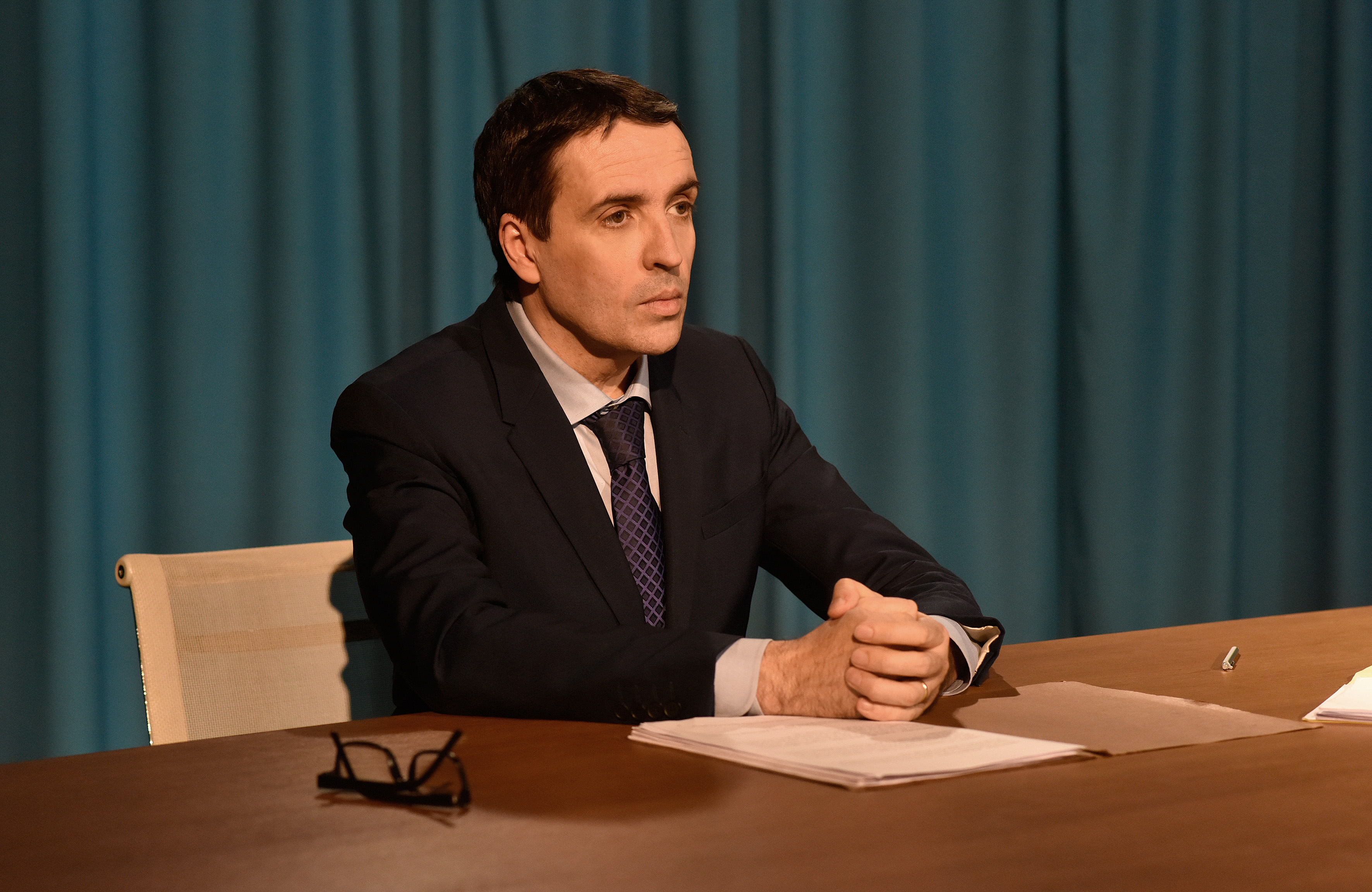 L’originalité du projet et de sa réalisation consiste dans le montage savant de morceaux des vrais textes des huit duos de la période de référence. Montage savant, car c’est davantage un enchaînement qui suit une logique sur le fond oubliant tout déroulé chronologique, presque à la manière de la comptine de « trois petits chats », un mot ou une idée de l’une des joutes verbales, servant de redémarrage à la suivante. Les conceptrices n’ont pas cherché à faciliter la tâche de leurs spectateurs, ni de leurs comédiens. D’une part, parce que Emmanuelle Lafon et Laurent Poitrenaux (tous deux excellents) jouent indifféremment des candidats masculins et féminins (qui ne sont de fait qu’au nombre de deux), d’autre part parce que les morceaux choisis ne contiennent pas toujours d’interpellation permettant de les identifier immédiatement et enfin parce qu’elles ont pris le parti d’interdire à leurs comédiens toute imitation. On ne peut reconnaître quasiment aucune gestuelle (à part peut-être les mains de Mitterrand dans le débat de 1981), voix, mimique ou tic de langage. La fluidité est telle parfois dans les propos échangés (jusqu’à certains termes – rassemblement, confiance, justice … – qui traversent les époques) que l’on pourrait à plusieurs reprises se demander si l’on a ou non changé d’époque, les seules indications consistant en des mini ruptures scéniques, consistant en un changement de position, parfois subtil de chacun des candidats.