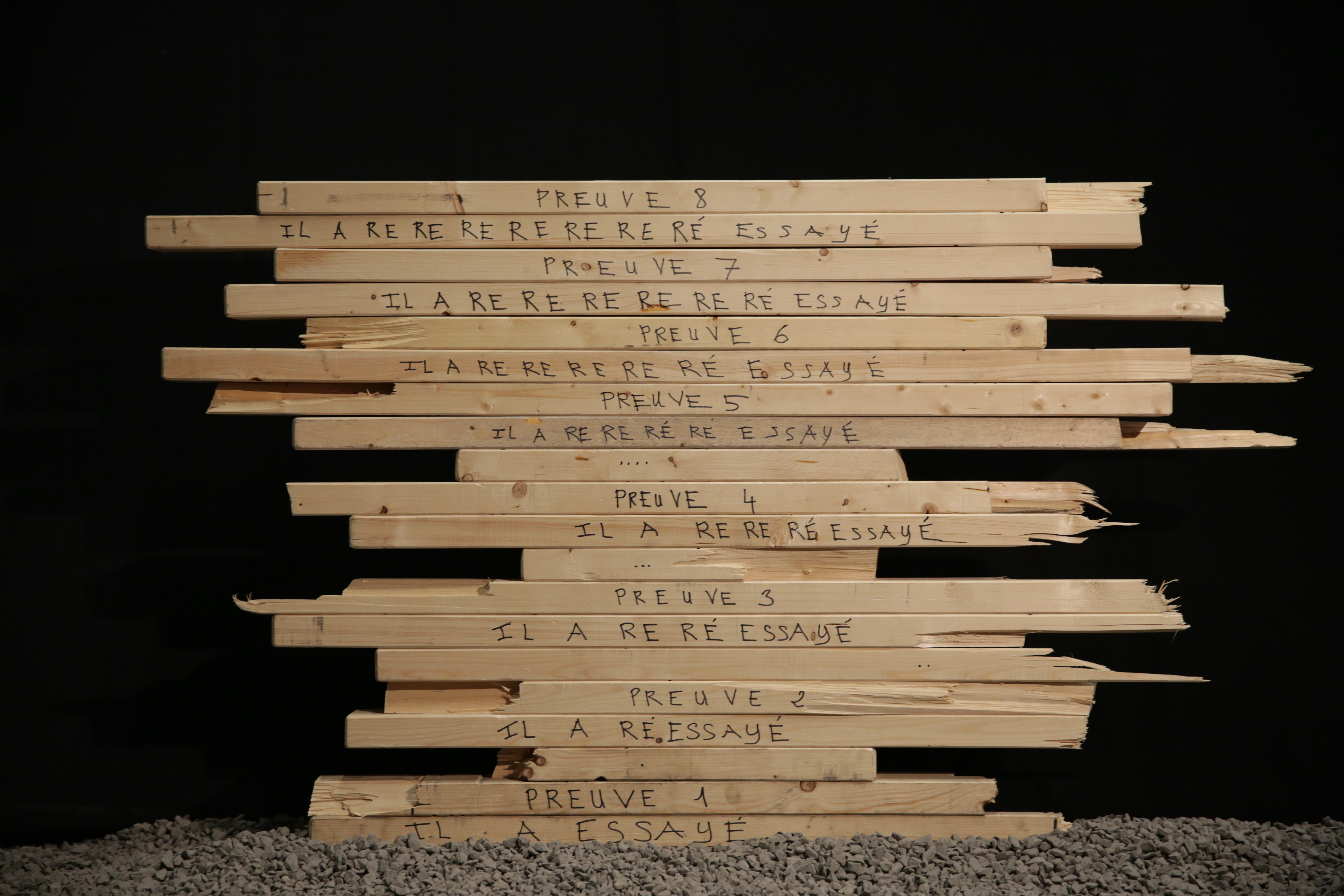 « Considère tes actes manqués ou ratés ; cela fait longtemps que les actes utiles ne sont plus ». Et s’il ne s’agit plus de rater comme un Charlot maladroit en rapport à des normes sociales, ce qui est raté c’est la certitude de faire œuvre et d’aller dans le bon sens. Car ce dont on est sûr c’est de n’être sûr de rien. S’il y a des « restes » à extraire pour avancer après avoir enlevé les décombres des mythes personnels et des histoires collectives, il n’y a pas de raccourci possible, il faut encore, comme EHKL, scier la planche sur laquelle on tient. Encore constater l’effet de la gravité ou encore avoir essayé de la braver le plus longtemps possible — les restes ? ces planches sciées entassées devant l’entrée et sur chacune desquelles on lit : « preuve n°… il a re-re-re-… -essayé ».