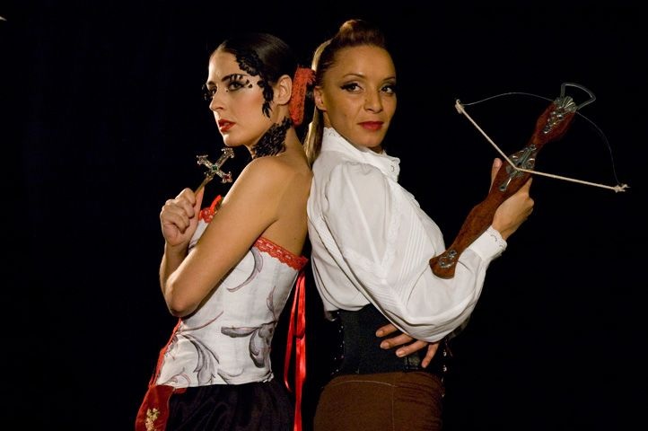 L’histoire des trois mousquetaires est donc à redécouvrir au travers de l’adaptation libre du roman et de la mise en scène de Laurie Jesson. Cette comédienne-metteur en scène interprète également, et avec brio, le rôle de la jeune mercière. Les jeux de mots fusent, les livres volent, les entrées et sorties s’enchaînent et les bons mots se bousculent du début à la fin tel une pièce de Feydeau. L’adaptation est libre donc enlevée, fine et très originale par ses absences masculines. Les quatre autres comédiennes, Maryline Ajax en Rochefort, Magalie Loison en reine de France, Caroline Misbach en Planchet et Elia Zaharia en Rochefort, suent corps et âmes et s’en donnent à cœur joie. Leur bonne humeur est communicative. Toutes les cinq elles forment la troupe Lady M, constituée au sortir des Cours Florent en 2007. Le décor consiste en une malle en bois et un trône qui change de couleur au gré des thèmes. Ce choix de décors minimalistes et la salle très intimiste permet de se focaliser sur l’histoire et les détails du phrasé qui fourmillent et permet aussi aux spectateurs de participer activement à la pièce. Si la timidité vous ronge ne vous placer pas dans les premiers rangs mais préférez plutôt le fond et ne soyez pas en crainte, l’énergie des artistes et leur bonne entente est palpable du premier au dernier rang. La mise en scène et l’écriture ne mettent pas une des comédiennes en avant mais permettent, au contraire, à chacune de pouvoir exprimer son talent. Elles deviennent toutes les héroïnes au fur et à mesure de l’avancement de la pièce et du changement de répertoire. L’humour est le seul registre commun à tous ces thèmes et c’est réussi. Les mousquetaires n’apparaissent jamais, même si leur présence est quelquefois palpable, et vous sortirez après une heure quinze en vous demandant si d’Artagnan et ses comparses étaient bien utiles dans le roman de Dumas.