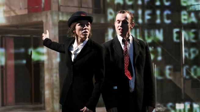En écrivant Sainte-Jeanne des Abattoirs, Brecht s’en prend à l’économie de marché qui – sous couvert de libertés formelles – impose au plus grand nombre ses lois et ses faillites. Marie Lamachère et ses nombreux acteurs nous restituent avec justesse l’atmosphère de la pièce, et invitent le spectateur à remettre en question ce monde dans lequel il vit et auquel il contribue dans ses actes quotidiens.