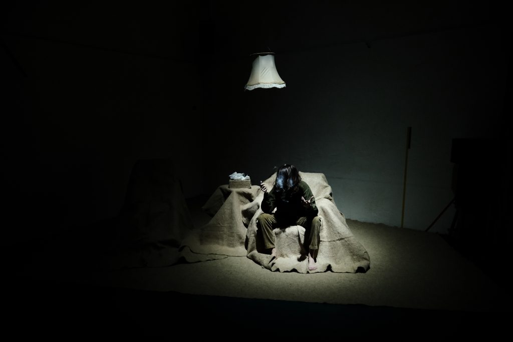 Au tout début de ce seule en scène, dont le titre Sans faire de bruit, est tout à fait résonnant sans le paraître, on se demande ce que Louve Reiniche-Larroche et Tal Reuveny veulent nous dire. Louve Reiniche-Larroche s’offre aux voix des membres de sa famille, qui, à travers elle, à travers sa bouche soudainement métamorphosée, vont raconter la soudaine perte de l’audition de sa grand-mère, ou de leur épouse, mère, arrière-grand-mère, c’est selon. On se demande quel est le sens exact de ce jeu étrange. L’ingénieur du son, Jonathan Lefèvre-Larroche a certes mis au point un très bon travail, ces voix sans images prennent place parfaitement, mais pourquoi évoquer ainsi le débarquement d’un handicap si fort dans une vie quotidienne, des vies quotidiennes plutôt, chacun se plongeant dans ses souvenirs. On peut imaginer qu’une sorte de « jeu » est mis en place face à un handicap incompris…