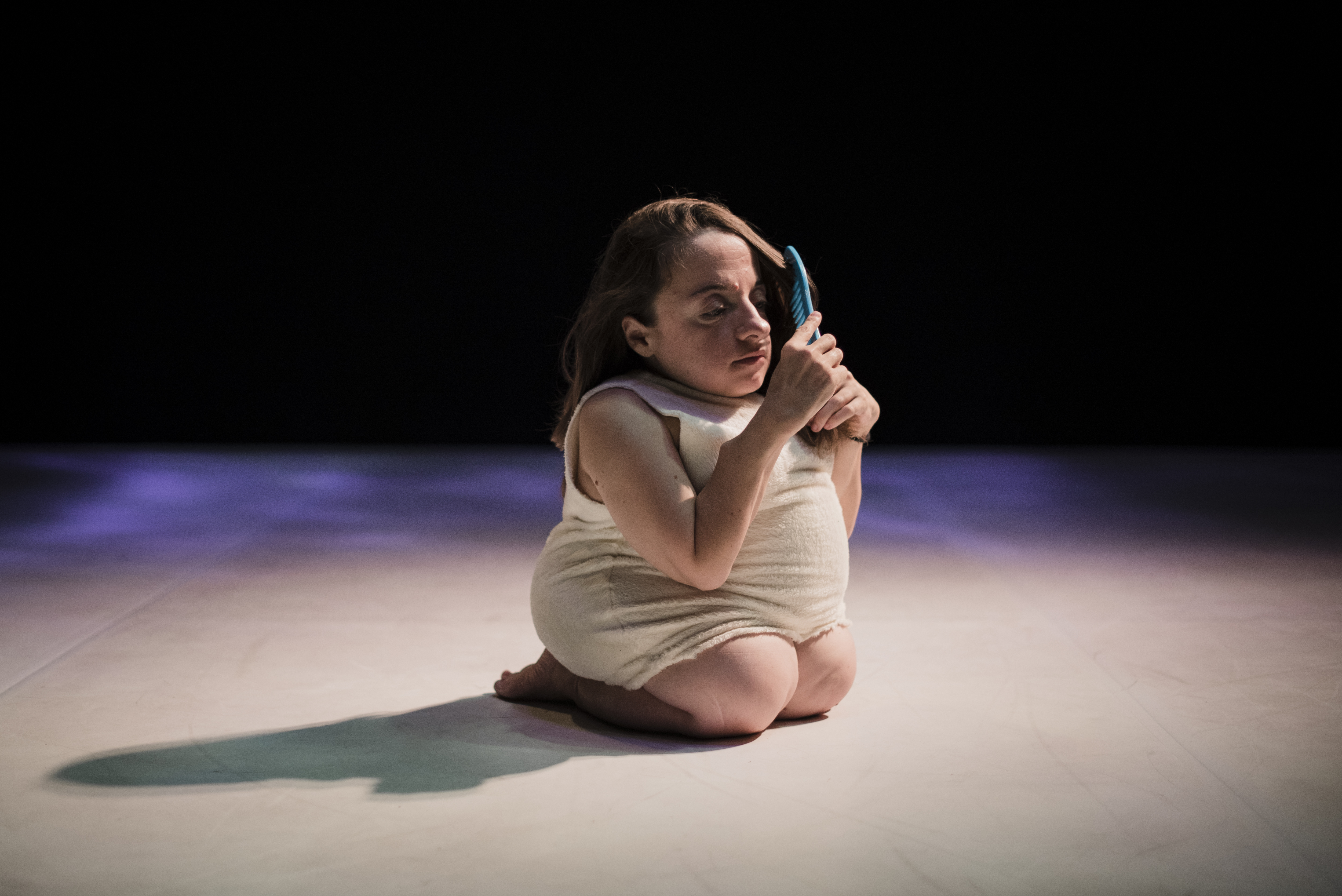 Le corps hors-norme, le corps autre, enjeu chorégraphique et performatif qui défie la monstration où jeter son corps dans la bataille comme, après Antonin Artaud, l’imposait Raimund Hoghe, disparu récemment, relève moins du défi crane que d’une ferme réappropriation de soi pour imposer un nouveau regard sur le handicap. Passer d’objet de curiosité anatomique à celui d’être son propre sujet exposant crûment son handicap actant la réappropriation de son image. « Ce n’est pas toi qui m’interprètes, je vais te montrer le chemin pour me comprendre. Je prends la responsabilité de dessiner l’image que le monde aura de moi » affirme Chiara Bersani, 98 cm, « naine », atteinte ostéogenèse imparfaite modéré. Et ce qu’elle impose c’est un regard franc sur ce corps. Et à ce corps qui n’est pas une chimère elle offre la possibilité d’une métamorphose, la licorne. « Moi, Chiara Bersani (…) je me déclare chair, muscle et os de la licorne. Ne connaissant pas son cœur, j’essaierai de lui donner mon souffle et mes yeux. Je vais habiller son image, je ferai son costume, qui deviendra d’abord mon armure puis ma peau. Nous découvrirons nos mouvements, nos baisers, nos salutations, nos bâillements, par le biais d’un dialogue entre ma forme qui agit et sa forme qui habille. » On cherchera en vain la symbolique de cet animal fabuleux. On interprétera ce que l’on veut. C’est le destin et le malheur des mythes. Ce qui importe là c’est l’acte performatif qui ouvre vers un ailleurs, un imaginaire et affranchi le regard porté sur un corps hors norme, libéré des clichés et du mépris. Il se passe peu de chose sur le plateau. C’est avant tout une présence phénoménale qu’amplifie quelques simples mouvements qui signent la métamorphose. Mais ce peu qui est beaucoup, dans un temps comme dilaté, contraint le spectateur à regarder sans se détourner. Nulle échappatoire. Femme-cheval s’ébrouant, lentement Chiara Bersani fait le tour du plateau comme en manège, et fixe un à un, avec un sourire ravageur, quand elle ne rit pas, chacun des spectateurs présents. Chiara Bersani désamorce ainsi tout voyeurisme, tout regard obscène, qu’elle retourne comme un gant, sèchement. Tombent les préjugés. Cette métamorphose est un acte libérateur. Pour elle comme pour nous. Jamais sans doute licorne, animal mythique, ne fut plus humaine. Et c’est bien là le but atteint, sous l’image palimpseste de cet animal mythique, c’est une humanité jusqu’alors bafouée qui est affirmée. Et par cette interaction volontaire et forte, cet engagement ferme et témoin d’une histoire singulière, ce corps entre dans le champ du politique.