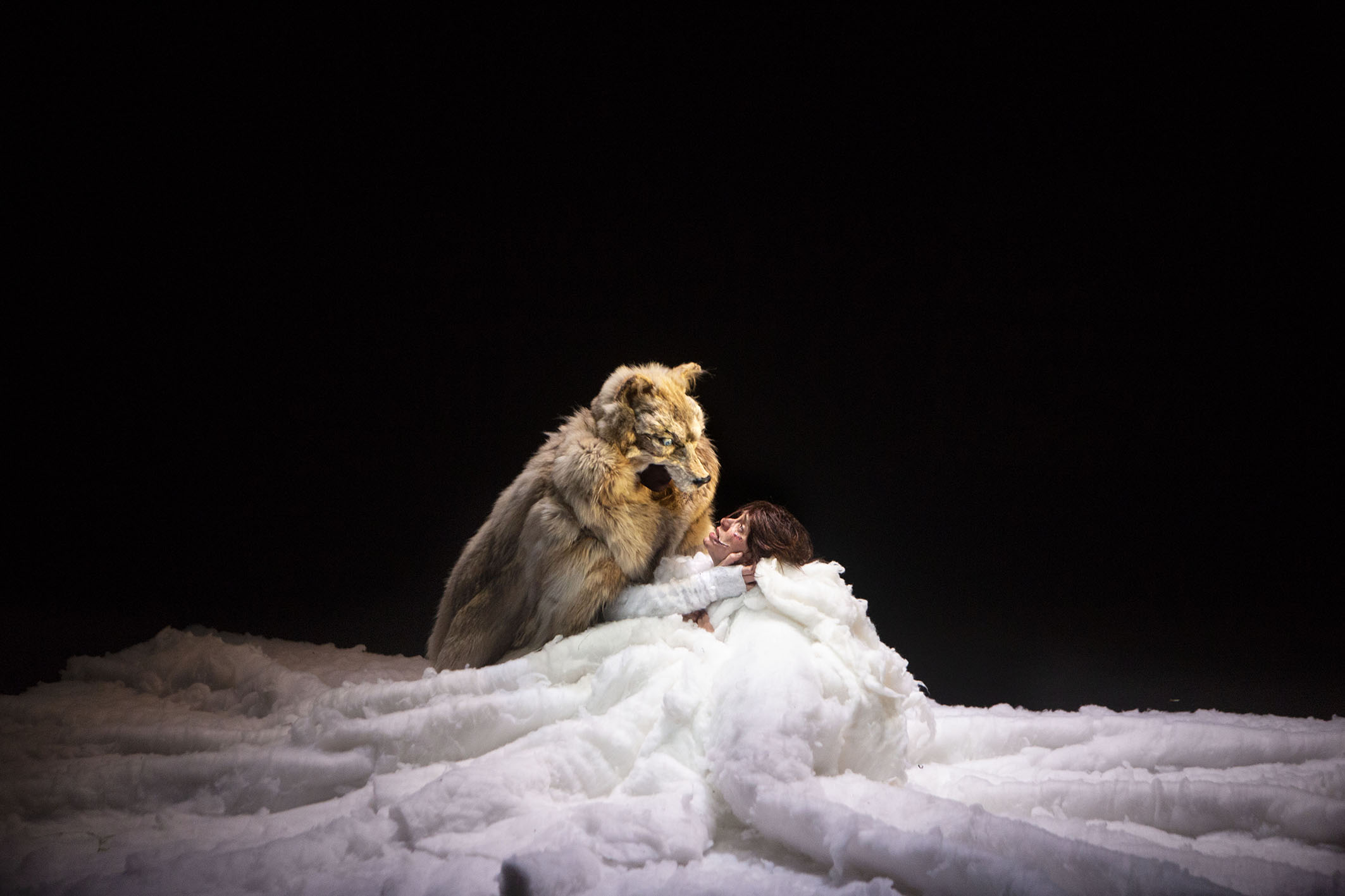 Julie Bérès interroge notre relation à la nature, ce que cela peut signifier de vivre avec, dans, au milieu du monde vivant et pas uniquement de l’Homme et de cette volonté de civilisation par le dressage et l’aliénation et le désir de l’Homme de dominer contrôler ce qui l’entoure. C’est un très bel objet artistique qui fait vivre un autre monde merveilleux et horrifique avec de beaux chants, belles lumières, une interprétation très réussie mais qui m’a laissé un peu froide. Je m’interroge sur le message qu’elle souhaitait transmettre, c’est un état des lieux plus qu’un positionnement et le parti pris de la metteure en scène m’a manqué. Ou n’ai pas su le voir ? C’est aussi possible…