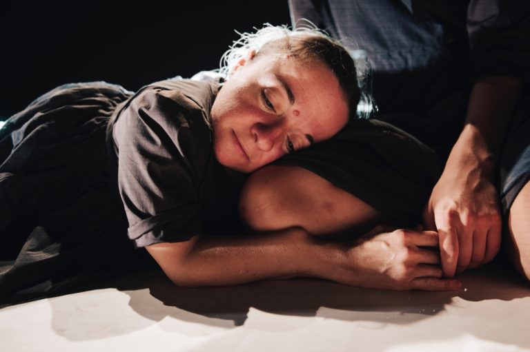 « Ce n’est pas toi qui m’interprètes, je vais te montrer le chemin pour me comprendre. Je prends la responsabilité de dessiner l’image que le monde aura de moi » affirme Chiara Bersani, 98 cm, atteinte ostéogenèse imparfaite modéré. Dans cette nouvelle performance, après la beauté de Seeking unicorns vu au Rencontres chorégraphiques internationales de Seine St Denis en 2021, Chiara Bersani signe son retour avec Sottobosco. Encore une fois nous sommes bluffés par cette présence hors-norme, non par ce corps défait par la maladie, mais par cette capacité à s’imposer, imposer un regard franc sur ce corps qui se meut à sa façon, une lente reptation, nous affranchissant au final de tout voyeurisme, nous libérant de tout clichés. Encore une fois il se passe peu de chose sur ce plateau jonché de Marshmallow, qui n’est pas sans rappeler la scénographie de Peter Pabst pour Pina Bausch, les œillets de Nelken, et pourtant nous sommes littéralement pris dans les rets d’une proposition radicale, une mise à nu du handicap, de ses difficultés et de son interaction, ici symbolique, avec la société. Chiara Bersani n’est pas seule sur le plateau où l’accompagne la danseuse Elena Sgarbossa qui ne porte, elle, nul handicap. Et c’est dans le contraste de ces deux corps dissemblables que s’inscrit cette performance où chacune à leur façon traverse le plateau, métaphore d’une forêt qui les voit errer, perdues, et s’acheminant lentement l’une vers l’autre.