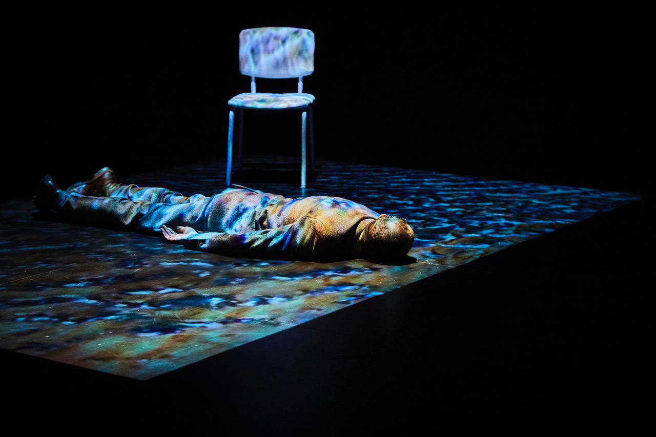 On pense à Virginia Woolf, évidemment. On y pense encore plus en voyant le corps de l’acteur allongé au sol, submergé par les flots déversés d’une vidéo. Comment ne pas se laisser aspirer par les vagues du réel ou par les profondeurs du passé quand on en saisit aussi puissamment que Joseph Mitchell la vitale scansion ?