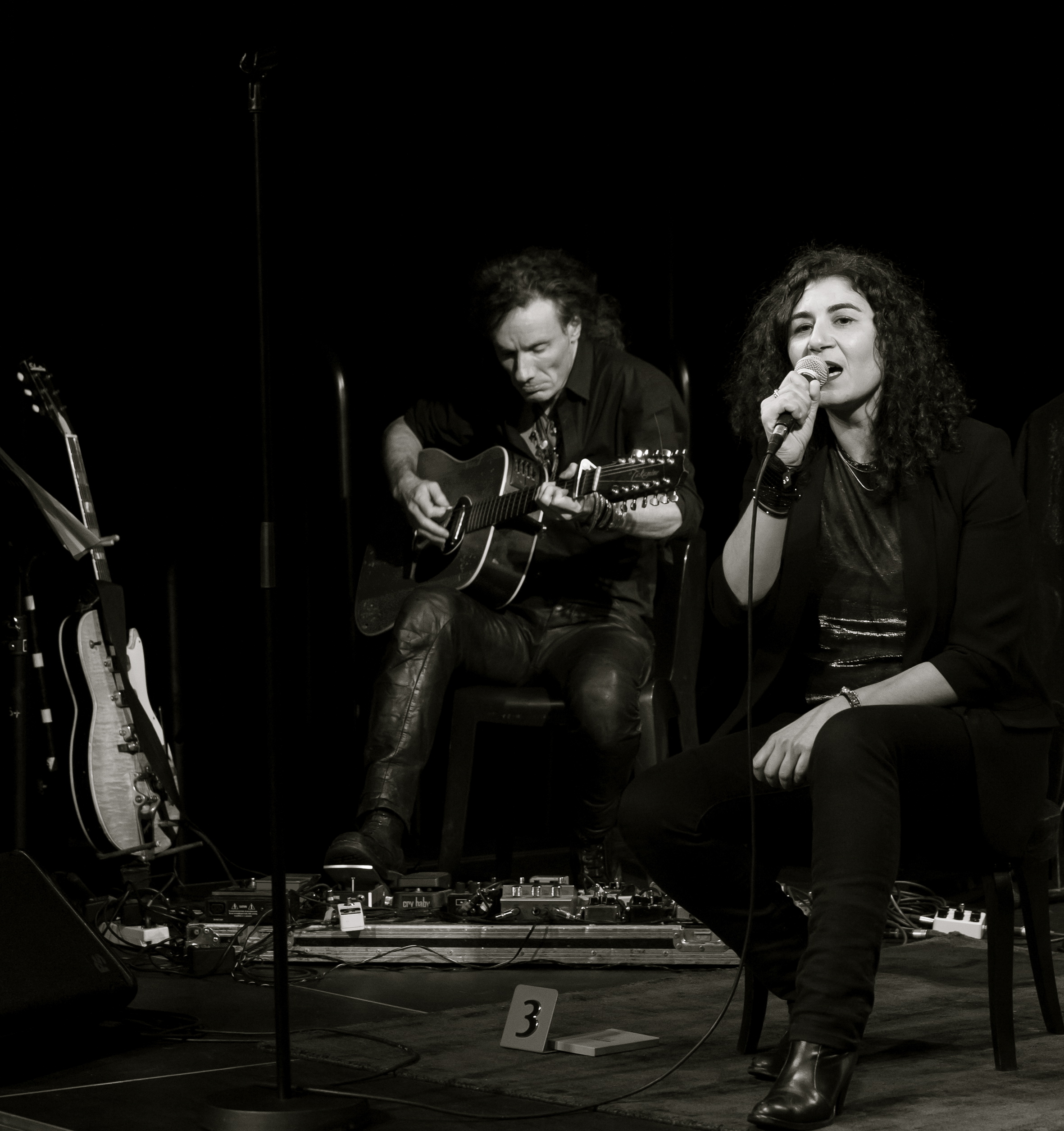 Suite Samouraï se construit comme une suite musicale, lyrique, épique : le poème d’une femme moderne qui oscille dans les vertiges de l’amour entre ce qu’on y trouve de plus beau et de plus douloureux. Ce que l’on remarque vite, c’est qu’elle y croque à pleine dent, et a la politesse de nous en partager la saveur. Comme nous avions pu le voir dans son dernier spectacle, Dérives, la poésie ici ne manque pas de style et se retrouve toujours au rendez-vous. Néanmoins, il y a dans sa nouvelle proposition une figure un peu plus narrative qui se dessine au milieu des contours floutés par la poésie. Une histoire d’amour passionnée, racontée également comme un carnet de voyages aux milles paysages exotiques, et frisant enfin avec le thriller. Des registres en somme tout à fait complets et complexes, qu’Aline César aime à surprendre au cours de son spectacle.