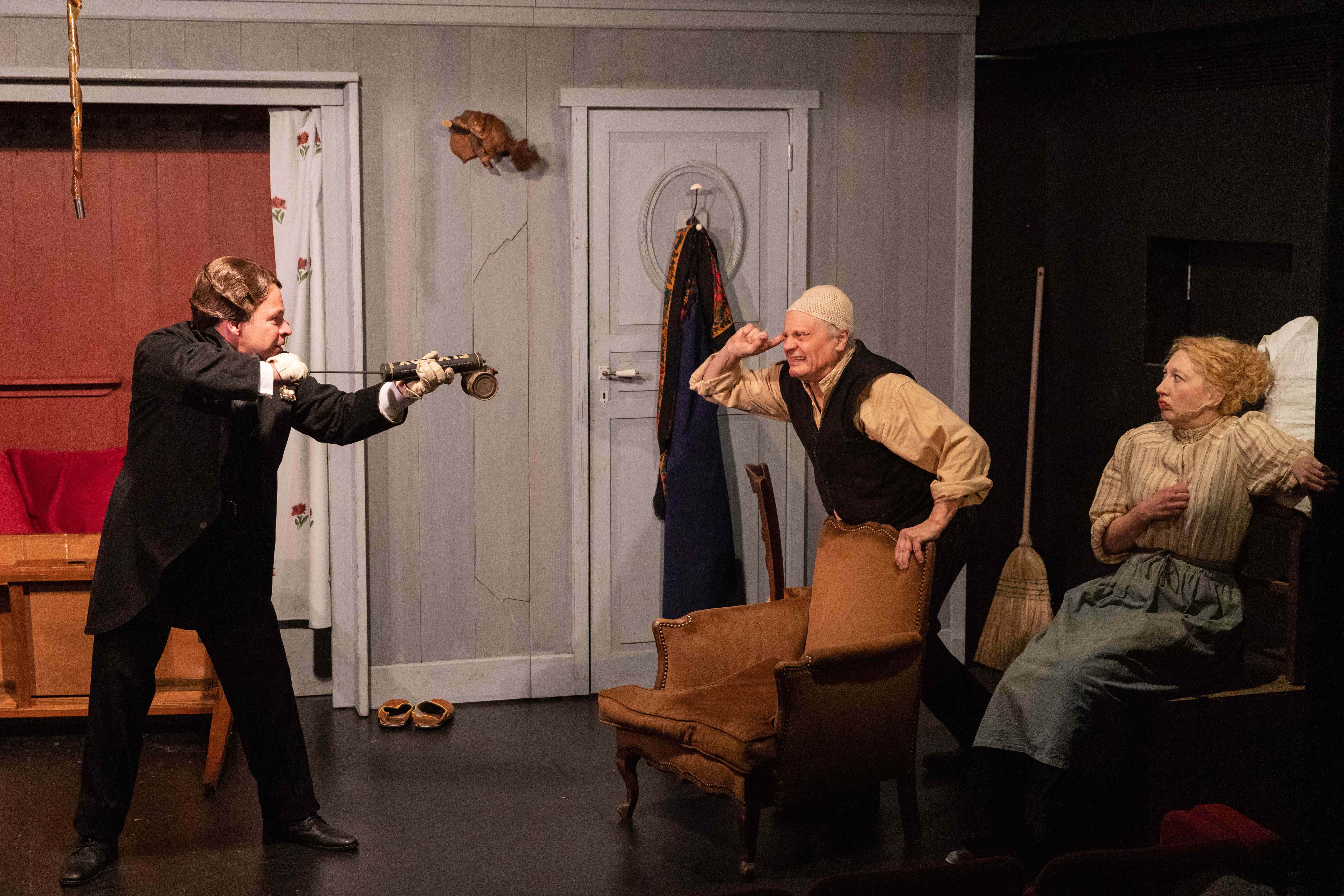 « Ah attention, hein, c’est du Tchekhov, mais ça va crier », prévient Philippe Tesson, le soir de la première, avant de se lancer dans un numéro comique avec son ouvreuse slavophone. Certes oui. C’est bien au Boulevard que l’on est, peut-être, avec ces mimiques appuyées, ces « face public », ces répliques lancées à la cantonade, ces accessoires qu’on fait voler et ces décors qui bougent. Ça crie et ça résonne dans la petite bonbonnière du Poche, tandis que les sièges bien sages s’agitent de « Oh, là, là, ce couple », « tu as vu ce qu’elle lui a mis », comme au poulailler.