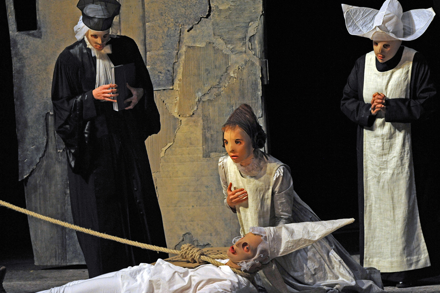 Le metteur en scène, Christophe Rauck, a un mot pour parler des personnages de cette pièce. Il les décrit comme « des clowns noirs ». L’image est belle. On imagine des clowns sortis d’outre tombe pour témoigner de l’horreur en chantant…