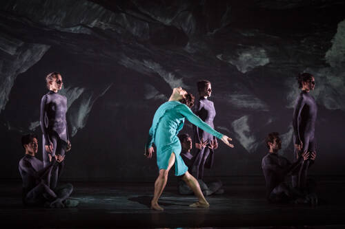 Wayne McGregor a choisi de s’entourer de Thomas Adès pour la composition et de Tacita Dean pour la scénographie. On ne peut s’empêcher de trouver amusant que le patronyme du compositeur de la partition de ce ballet soit un homonyme du Dieu grec des enfers !