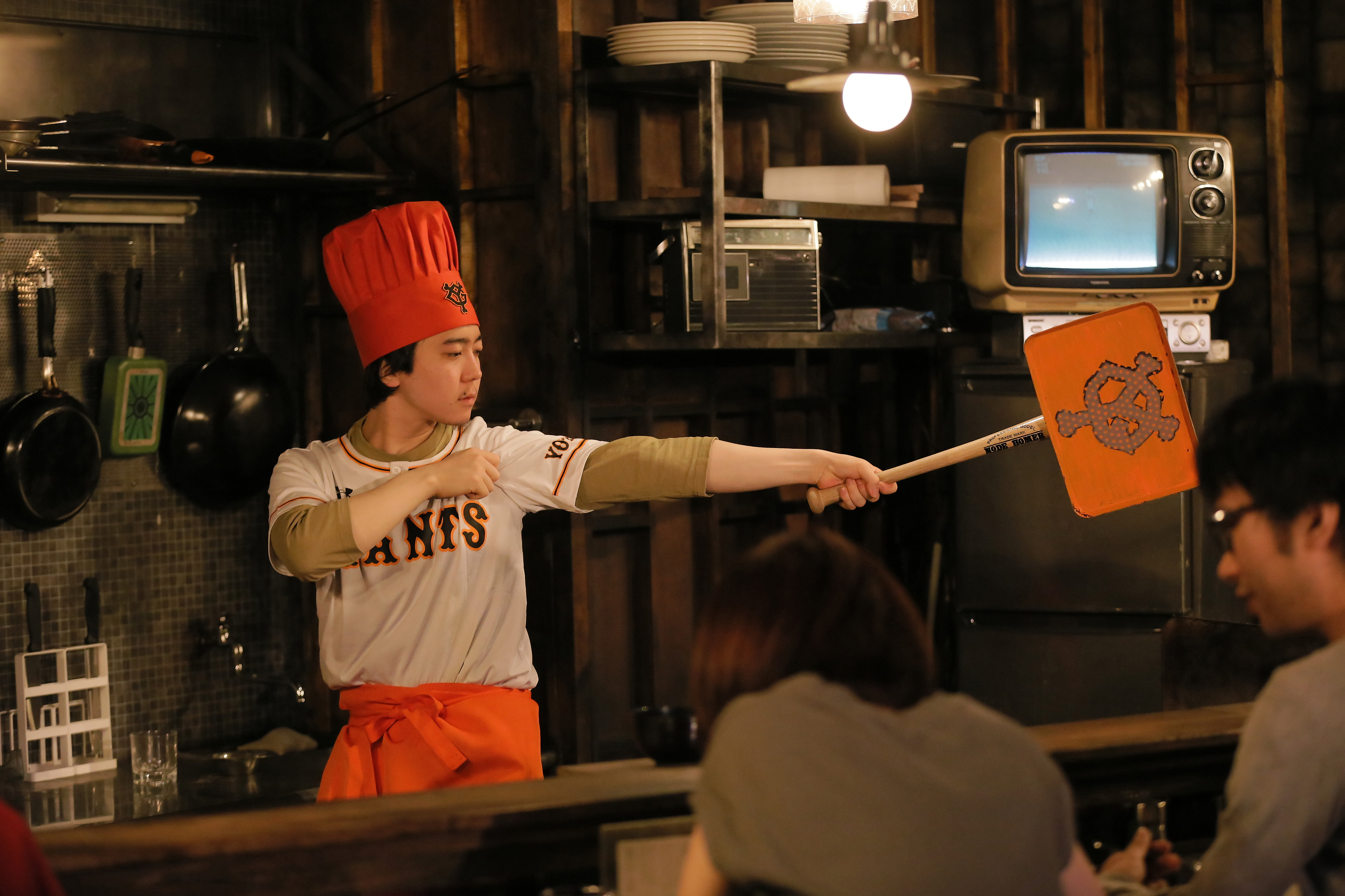 Osaka, dans un restaurant local banal, débarque un jeune homme. Fraîchement accueilli par le propriétaire qui le regarde à peine avant que ce dernier ne lui fasse une proposition étrange : reprendre le restaurant. Arguant qu’il ne sait pas cuisiner, pas même une omelette au riz, encore moins les plats occidentalisés proposés, le jeune homme lui oppose un refus. Le propriétaire, étrange marché, le convainc de porter une oreillette et qu’il lui donnera toutes les indications nécessaires de sa chambre dans laquelle il ne tarde pas à disparaître définitivement. Aux yeux de ce gamin et aux nôtres aussi. De là-haut il voit tout, entend tout, prodigue conseils et commentaires, souvent peu amènes. De ce duo étrange, de cette association originale, le restaurant renaît de ses cendres. Les clients reviennent. Kurô Tanino a ce don unique de nous surprendre, d’amener le spectateur sur un terrain bientôt mouvant sans que nous y prenions garde, avant que tout ne bascule irrémédiablement. Effet de stupeur garantie. Une mise en scène et une scénographie hyper-réaliste, ici on cuisine réellement et la salle hume les odeurs, un huis clos où la banalité et le quotidien entrent sans fracas sur le plateau. Rien de bien spectaculaire en apparence, entre confection des plats, vaisselles et conversations de circonstance avec les rares clients, l’apprentissage de la cuisine et la métamorphose de cet apprenti gauche et de plus en plus assuré. Avant la chute inattendue. Un quotidien sans aspérité s’il n’y avait cette voix qui s’insinue lentement dans les zones obscures du jeune homme, cette relation hors-norme qui voit insidieusement la manipulation aller jusqu’à la dépossession et l’élève dominé perdre sa personnalité. Nous même ne prenons pas garde de ce qui advient de façon sournoise. Le rire devient rictus. Rien n’est laissé au hasard et c’est par petites touches que procède Kurô Tanino, incidemment. Des silences, beaucoup, des absences où le plateau vide prend soudain toute son importance et son inquiétante étrangeté, des clients peu bavards mais à la présence énigmatique et pour certains ambigüe. Paroles distillées mais jamais vraiment anodines. Efficacité de cet hyper-réalisme soigné, de cette banalité, faux-nez d’une réalité sous-jacente bien plus violente, exacerbé par ce huis-clos. C’est à cela que s’attaque Kurô Tanino, une société japonaise urbaine gangrenée par la corruption. Argent, sexe, violence. La manipulation des êtres crédules, naïfs, en manque de repère. Le lavage de cerveau quotidien. L’hyper-surveillance. Sur cette fracture de la société japonaise, traitée plus en douceur et poésie dans L’Auberge de l’obscurité, Kurô Tanino signe ici une mise en scène au cordeau qui jamais n’est encore une fois démonstrative. Il procède en creux, s’attachant à de petits détails, anodins de prime abord, jusqu’à semer le trouble chez le spectateur. Rien n’est laissé au hasard et tout fait sens, des étranges vidéos diffusées entre deux scènes à la bande son fortement ironique. Et c’est lentement que sourd le malaise quand se décillent nos yeux sur la réalité et les conséquences de cet étrange marché entre le cuisinier et son apprenti. Nous même, au fond, manipulé par Kurô Tanino, tombant à pieds joints dans les rets de cette mise en scène intelligente et retorse. Car cette petite voix que nous entendons en même temps que l’apprenti (un effet de mise en scène particulier et dont il faut garder la surprise), entrant comme par effraction dans son crâne, cette voix vrillant l’inconscient de ce jeune homme et qui finit par disparaître dans l’obscurité, a-t-elle jamais réellement existée ?
