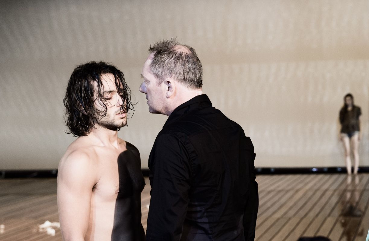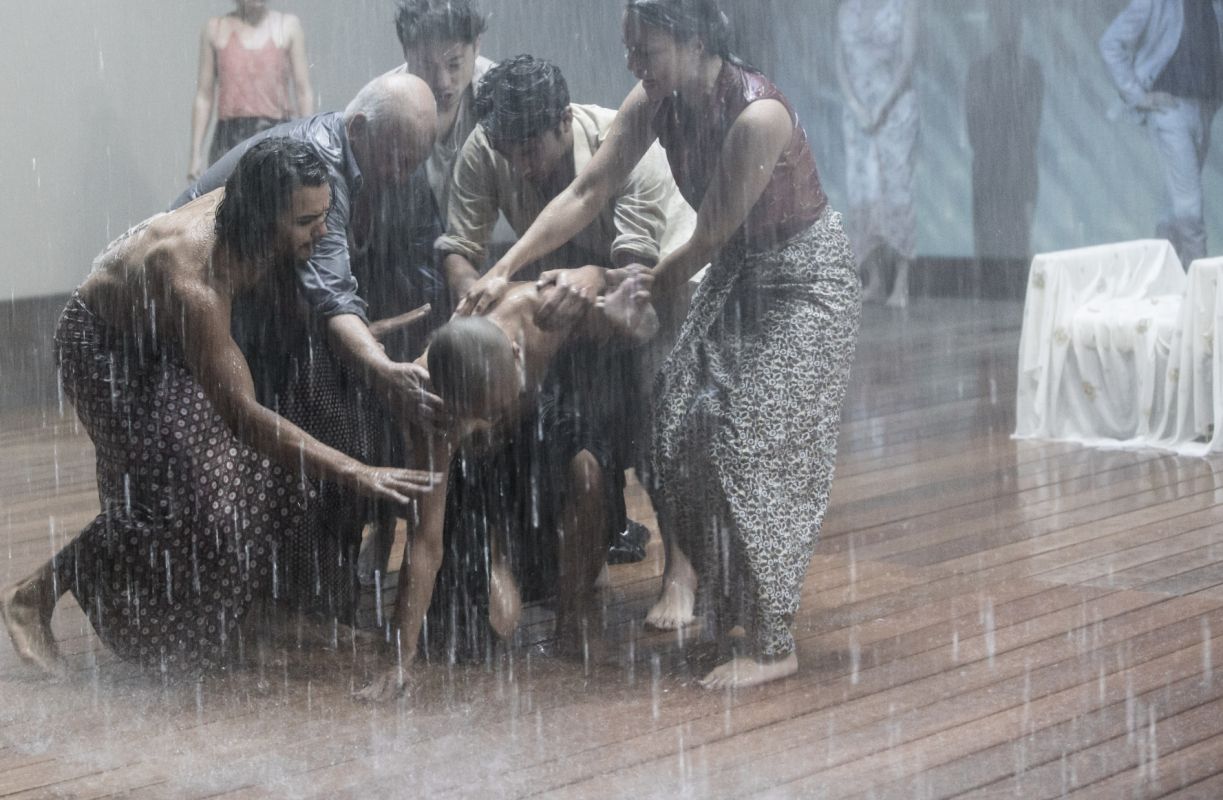 Pour donner vie au drame, le metteur en scène Belge Ivo van Hove utilise les moyens que lui autorise une scène ouverte aux dimensions impressionnantes. Donnant du sens au moindre objet, au moindre son, au moindre geste, il met ses idées foisonnantes, toutes d’une prodigieuse utilité, entièrement au service d’un auteur attaché à la grande précision des mots. Tout est pensé pour nous rappeler les lieux originaux, que ce soit le bois qui tapisse le sol ou la pluie qui tombe, par moment de façon abondante, sur les comédiens. L’on reconnaîtra aussi le metteur en scène d’opéras par la présence de musiques (percussions et cordes), aux sons asiatiques ou européens et c’est le compositeur, Harry de Wit, qui vient, en personne, rythmer le texte. Entouré d’écrans vidéo projetant des images liées au contexte, l’océan notamment, (l’eau est très présente dans ce spectacle), l’ensemble imprègne le spectateur des éléments propres à caractériser cette destination lointaine, aux mystères profonds. La richesse du texte, donné en néerlandais sur-titré en français, permet d’entendre une histoire à plusieurs facettes, politique, sentimentale, fantastique, toutes entremêlées. La qualité des acteurs issus de l’Internationaal Theater Amsterdam n’est pas pour rien dans l’intérêt de ce moment de théâtre fort et rare, que l’on déguste de la première à la dernière minute, pour peu que l’on passe le handicap de la langue, certes pas la plus musicale du monde, mais qui a du moins l’avantage d’assurer une homogénéité louable et un dépaysement complet !