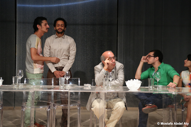 Ahmed El Attar, met en scène la relation acerbe de cette bourgeoise avec le peuple, à travers deux serviteurs et une nourrice. Alors que cette derrière, fille du peuple n’a pas le droit à la parole et reste debout, derrière les enfants de ses maîtres, tout le spectacle, les serviteurs sont eux-même organisés en classe inférieure et supérieure…