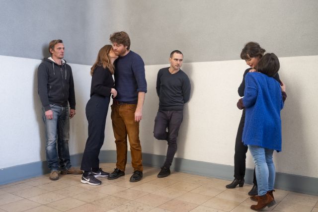 Et le collectif mené par Adrien Béal, faisant travailler au plateau ses comédiens, parvient avec un naturel déconcertant à faire passer ce message du regard et du désir. Ils sont présents en permanence sur scène, accompagnés par une création musicale d’instruments à vent qui rythme les changements de tableaux dans un décor un peu chaotique fait de cloisons, table, chaises et couvertures multiples, permettant une circulation fluide.