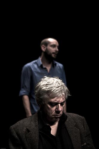 Pour se risquer sur un plateau, libre de toute scénographie, il faut des actions intérieures, des états et des fulgurances de la part des comédiens. Or, seul Daniel Martin (le père) a ces qualités. Il “bouge” intérieurement son personnage et suit l’objectif de sa pensée. Son écoute est remarquable et son jeu atteint le public. Ce n’est pas le cas de François André (le fils) qui, pour la première fois qu’il joue en France, n’a pas trouvé ses marques et les éléments de son personnage. Dès le début, il semble mal à l’aise et bredouille ses répliques. Il n’incarne pas ce fils accusateur et semble dérangé par la fixité imposée par la mise en scène. On devrait le voir plein de ressentiment et combatif, on le voit au supplice et à la recherche d’un second souffle. Ce qui décline son personnage vers une sonorité monotone, et l’empêche d’atteindre son objectif.