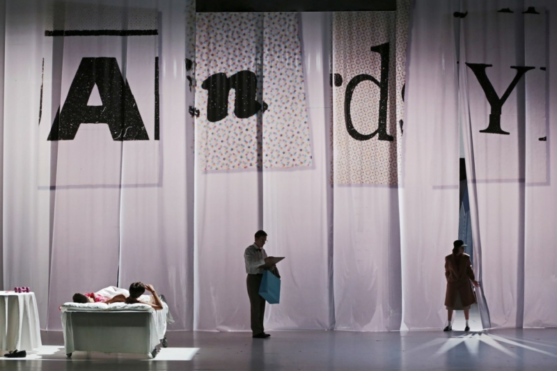 Qui était Andy Warhol ? Question posée par Gus Van Sant, réalisateur multi-primé, pour sa première mise en scène de théâtre. Trouble où l’ascension d’une icône des années 60, « the pope of the pop », qui éleva l’objet de consommation au rang de d’œuvre d’art. Enfin, c’est un peu plus complexe que ça… Mais ce qui semble intéresser là Gus Van Sant c’est avant tout la fabrique de l’icône elle-même, de Andrew Warhola à Andy Warhol, du publicitaire et dessinateur au créateur de la Factory. Théâtre musical et récit fictif construit à partir de faits et souvenirs, imaginaire aussi. Gus Van Sant déconstruit le mythe, le met à nu avec beaucoup d’ironie et de causticité. Où l’on découvre sous la perruque platine, un Andy Warhol égocentrique, opportuniste, business man, avide de reconnaissance, et dont la formation de publicitaire participe indubitablement de son talent. Gus Van Sant ne se permet aucun jugement sur la valeur (non monétaire) de son travail, honni par le critique d’art Clement Greenberg réfractaire au Pop Art, mais se concentre sur le personnage crée par Andrew Warhola et qui imprima de sa marque, « sexe drogue et rock en roll », une époque en pleine effervescence. D’autres icônes traversent ce plateau. L’actrice Edie Sedgwick, égérie jusqu’à la rupture fracassante, Nico muse du Velvet, Valérie Solanas qui tenta de l’assassiner, Roy Lichtenstein, Truman Capote… L’underground new-yorkais, artistes et célébrités se faisant tirer le portrait, machine à cash, en quête d’un quart d’heure de gloire. Qui tous offrent un portrait en creux d’Andy Warhol, d’une époque et d’un milieu particulier dont il est à la fois le produit et le moteur. Même la Vierge Marie, oui, intervient. Laquelle férue d’art contemporain ne serait pas sans avoir été celle ici qui inspira au fidèle croyant Andrew Warhola les Cambell’s soup can…
