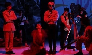 C’est dans un univers coloré et pop que 10 très jeunes comédiens et chanteurs interprètent cette galerie de personnalités. Certes, ils sont loin d’avoir l’âge des rôles mais qu’importe. Ce qui semble compter là, loin de tout mimétisme, c’est comment ils s’emparent, traduisent, expérimentent ces multiples identités avec aplomb. Un jeu de rôle volontiers iconoclaste où ce qui semble importer n’est pas tant la vérité, connue de tous croyons-nous, mais son interprétation, voire sa réinterprétation. Et en évitant ainsi tout artefact et artifice, ajouté à leur conviction absolue d’être ce qu’ils sont, et leur talent certain et affirmé, ça marche. Mise en scène virevoltante, fluide, épurée et sans temps mort qui n’est pas sans faire penser aux toiles même d’Andy Warhol, dans leur objectivité sans apprêt. Une efficacité et une précision maniaque quasi cinématographique qui manque sans doute d’aspérité. On est certes séduit mais il manque à tout ça, devant ce portrait clinique un peu d’humanité. On est devant cette représentation au demeurant impeccable, comme devant une boite de soupe Campbell, non pas perplexe ni indifférent, mais coupé de toute émotion. Mais sans doute que là n’était pas le but dans cette volonté de dissection d’une icône. Qu’importe, le regard de Gus Van Sant sur Andy Warhol ne manquant pas d’un certain humour, il n’y a aucun déplaisir à découvrir cette création empreinte de vitalité et de jeunesse.