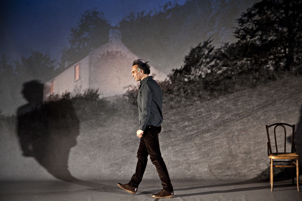 Puissance du décor, photo molle d’un paysage anglais inconnu (de nous) et qui fait parti du jeu, le cache, simplicité pleine qui nous expliquerait presque une part du travail de John Sassal. Oui, le goût à la philosophie de campagne reprend, seringues et compresses font à nouveau leurs effets magiques. Le jeu de Nicolas Bouchaud est lui aussi fin et complexe. Sympathique, tordu, dans un sens positif, il nous fait sentir tout ce que ce médecin a perçu. La force est là. Nous ressentons, ici ou là, les surprises qu’ont pu avoir John Berger et Jean Mohr en 1967. Ce spectacle est donc terriblement complexe. Il force ici ou là au(x) soupir(s), ailleurs nous sommes en bottes, souriant ou philosophiques sur un chemin boueux. Donc l’ennui sait montrer le bout de son nez, puis il est mis à la porte : du oui, du non. En fait un spectacle fort et puissant. Intelligent et profond, qui ne donne pas forcément ses clés là, maintenant, même sous la pluie. Un humaniste est là, grâce à John Berger et à Jean Mohr. Grâce à Nicolas Bouchaud oui, mais grâce à lui surtout, de son approche de la vie, de cette campagne si forte, sa façon de « servir » l’autre, d’apprendre et d’y trouver une joie de vivre, sereine et linéaire, chargée d’une appétence certaine, dont on peut parler, là, maintenant, sans regret ni ennui, pendant des heures en pleine campagne, en plein Paris.