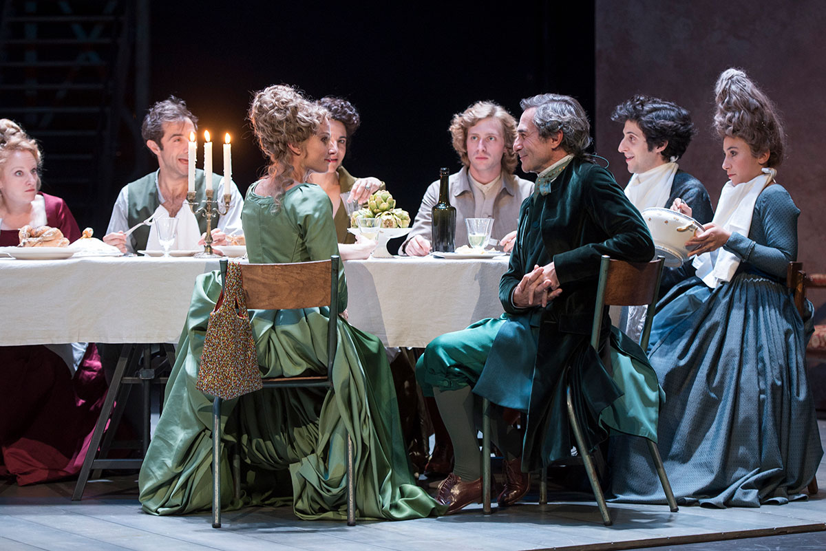 Clément Hervieu-Léger réalise une parfaite mise en scène, inventive et attentive aux détails, fidèle à l’esprit et à la richesse du texte, permettant à une troupe jeune, d’une belle homogénéité, s’exprimant aussi par le chant, la musique et la danse, (chorégraphies minutieusement réglées par Bruno Bouché), de donner le meilleur. Grâce à eux, nous participons pleinement à l’une de ces grandes fêtes dont Carlo Goldoni détient le secret, à l’énergie contagieuse, captivant le spectateur durant plus de deux heures. Car, passée une entrée en matière légèrement laborieuse, lorsque la machine est lancée, il n’est plus qu’une standing ovation, une fois la dernière réplique lancée, pour pouvoir l’arrêter.