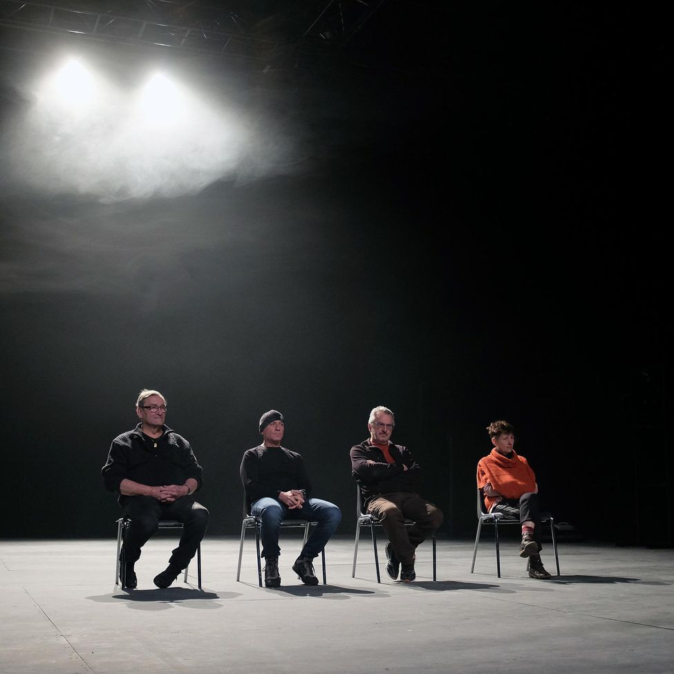 Un par un des hommes vont parler de leur condition de vie en prison. Ils ont des dégaines de cowboy, se plantent face au public pour raconter leur cauchemar. Ils grattent, raclent leur mémoire cabossée. Ils ont vécu comme des morts pendant des décennies et ont survécu en s’assommant de Temesta.