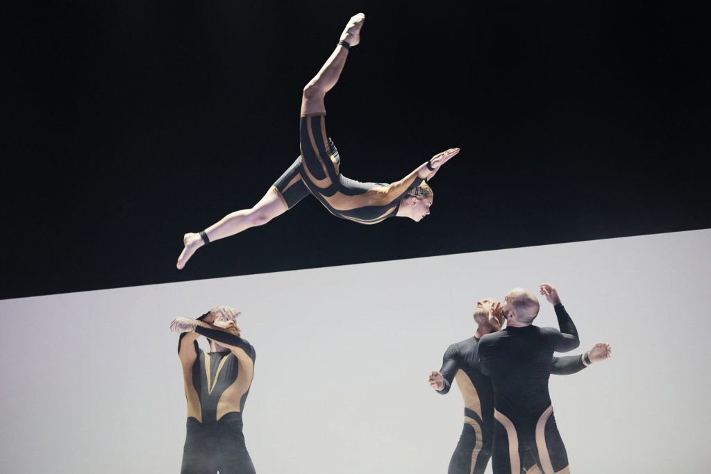 Si on ne peut nier que la performance est toujours au rendez-vous, à force de frôler le danger et d’insister sur l’impétuosité, le spectacle perd un peu en poésie, et ce rythme effréné aurait mérité quelques moments plus suspendus où la tendresse aurait pu contrebalancer la force. On se laisse toutefois emporter par la fougue viscérale de ces circassiens pétris d’incandescence. Et les amateurs de cirque contemporains apprécieront les justaucorps magnifiquement graphiques, qui subliment les mouvements tout en brouillant les frontières entre les corps des uns et des autres ainsi que la bande-son électro, signée Ori Lichtik, qui vient souligner la vivacité des mouvements et l’âpreté des rapprochements entre ces énergies vitales. Et à défaut d’un rêve éveillé, nous aurons vibré avec eux et admiré la capacité des corps à repousser les limites du monde humain, trop humain…