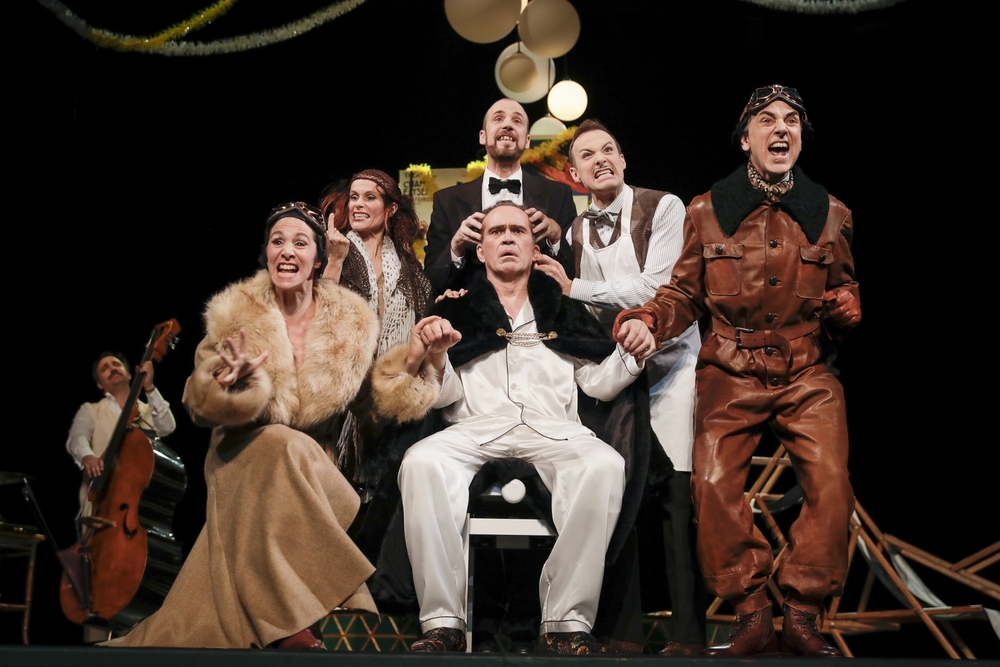 L’héritier noceur d’un empire de pâtes se voit dans l’obligation paternelle d’épouser l’héritière chilienne d’un royaume de cure-dent. Pour refuser ce mariage et à l’instigation de sa maîtresse Lucette de Saint-Aiglefin, Maxime Gavard contracte un mariage blanc en Angleterre avec Totte, sa manucure. Ce « yes » de circonstance ne va pas être sans conséquence… Amour, cocufiage, exotisme et lutte des classes, voilà qui compose le livret de cette opérette des Années folles, jazzy en diable et remontée avec bonheur par les Brigands dans une mise en scène allègre de Vladislav Galard et Bogdan Hatisi. Musique de Maurice Yvain, sur un livret de Pierre Soulaine et lyrics d’Albert Willemetz, quarté gagnant pour un ouvrage qui swingue, fortement marqué par son époque et calibré pour elle. Avec cette particularité quand même d’avoir été composé pour deux pianos et rien de plus. Et ça n’a pas pris une ride, malgré son sujet quelque peu rebattu et désuet, par la grâce d’une musique qui vous embarque prestement et vous fait frétiller sur votre fauteuil. Et quant au sujet donc, dont on se fiche un peu tant les ressorts sont un peu usés, on s’y attache par sa fantaisie sans façon et ses personnages haut en couleur, excentriques brossés avec un pep débridé. Un valet communiste, César, en ballotage dans le 16ème, qui souhaite être élu député « pour qu’on s’aime dans le 16ème ». Une prolétaire qui « cherche un emploi », Clémentine, rôle immortalisé par sa créatrice, Arletty. Un barbier, Roger, devenu vedette de la chanson. Une héritière de Valparaiso chaude comme la braise, Marquita Negri, persuadée qu’« à Paris les femmes sont déshonorées quand elles ne trompent pas leurs maris.» Une poule de dancing, Loulou, devenue lady. Maxime, l’héritier noceur, lunaire et couard devant papa. Totte, fausse ingénue et vraie amoureuse. Et le couple de Saint-Eglefin aux arrangements matrimoniaux plus ou moins consentis. Plus caractères que personnages mais les comédiens-chanteurs s’en tirent à merveille, rien ne sonne creux dans leur composition, excellents chanteurs de surcroît, sous la houlette des deux metteurs en scènes qui vont droit au but, ne s’embarrassent guère de second degré pour un premier jubilatoire et explosif. Gags à tous les étages, toujours dans la situation, jamais gratuits vraiment. Et place surtout à la musique, à la chanson. Fort bien troussés, ce fut un grand succès de Maurice Yvain, on comprend pourquoi. Ça vous rentre dans la tête comme une rengaine et ça vous toupille le cerveau. Et nous serions désobligeant si nous oublions les trois musiciens qui président aussi à a réussite de cet opus tant par leur présence – eux aussi sont de la partie dans cette mise en scène qui ne les oublie pas – et leurs talent indéniable. Ils font gambiller tout ce beau monde des Années folles, entiché de jazz, assis sur un volcan, menacé de ruine par le krach de 1929. « Yes » avec beaucoup, beaucoup de légèreté pointe déjà un monde qui vacille où la lutte des classes commence à secouer une société sur le déclin. Vladislav Galard et Bogdan Hatisi s’en amusent, le soulignent mais comme les auteurs qu’ils servent si bien ne s’appesantissent pas. Non, tout cela est d’une grande légèreté, un peu salace, un peu féroce, férocement drôle, et c’est à la musique, à la chanson, à l’opérette qu’ils rendent un bel hommage, en toute simplicité, sans chichis ni tralala, mais avec un vrai talent. Oh yes !